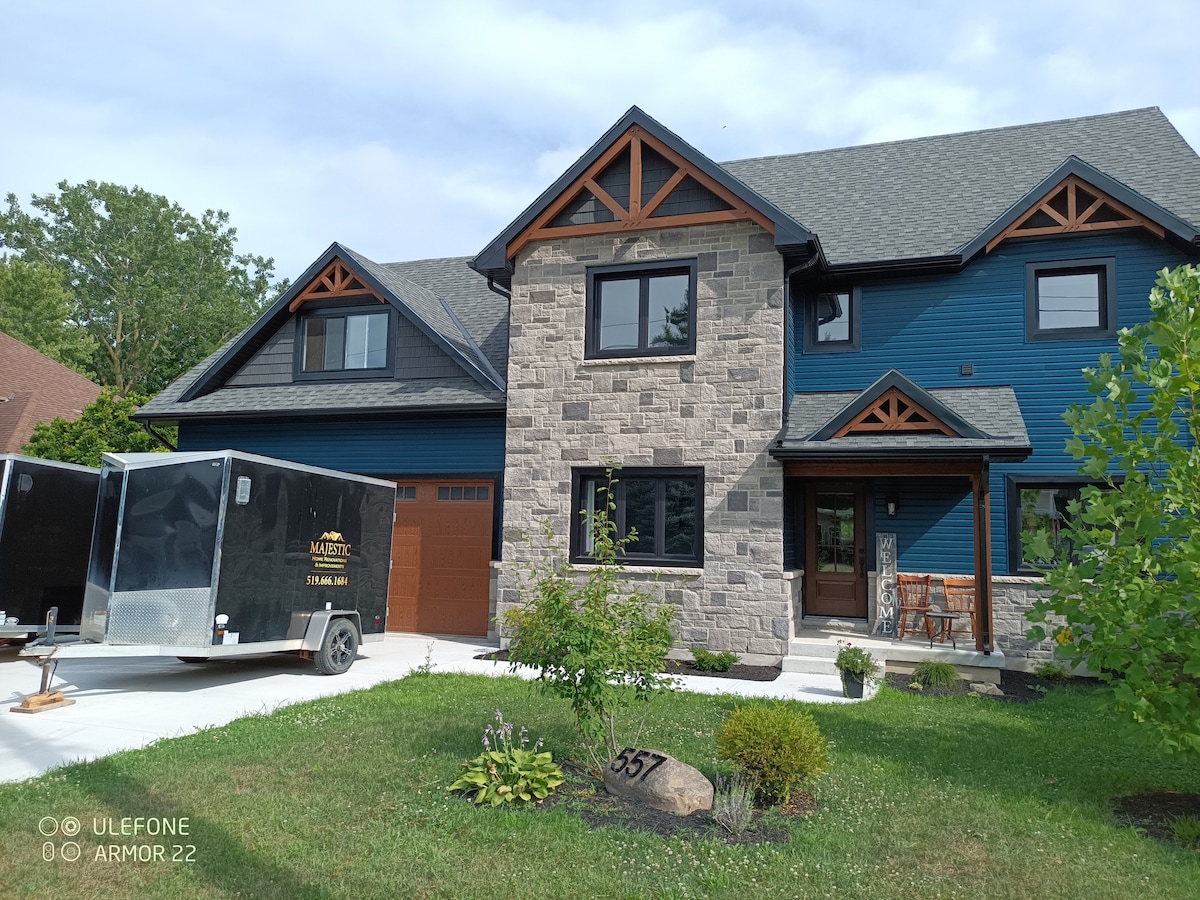 Private Family Retreat with private heated pool for your use only. Walking distance to Grand Bend’s Blue Flag status beach, family-friendly activities, restaurants, dining, art and culture. You’ll love our place for the private location, the views, the coziness, large seasonal heated in-ground pool, fire pit, huge property 5,000sq meter back yard, 3 fully equipped kitchens, 2 BBQ. My place is great for families. Free parking for jet ski & boats. NOTE: Pool open beginning of May to Thanksgiving.