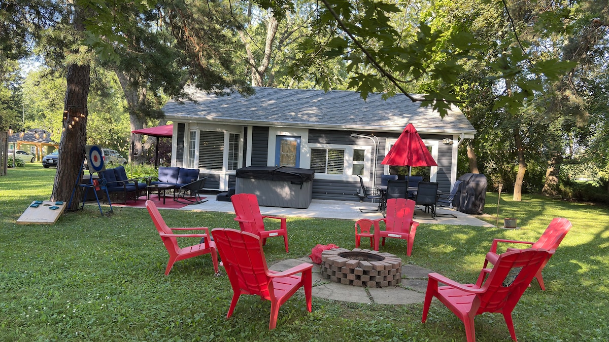 BEST location possible! Perfect family cottage or girls getaway! Take in the world famous Lake Huron Sunsets while soaking in the hot tub under our huge covered patio (w 65inch tv in summer) Beautifully furnished & completely renovated. WIFI, Netflix, Air con. Glass showers. Washer/Dryer. BBQ. Keurig pod machine & reg coffee maker. Parking for 8 cars. 50 STEPS from Main Street. Follow us @lakesidebeachhouse for cancellation and availability updates