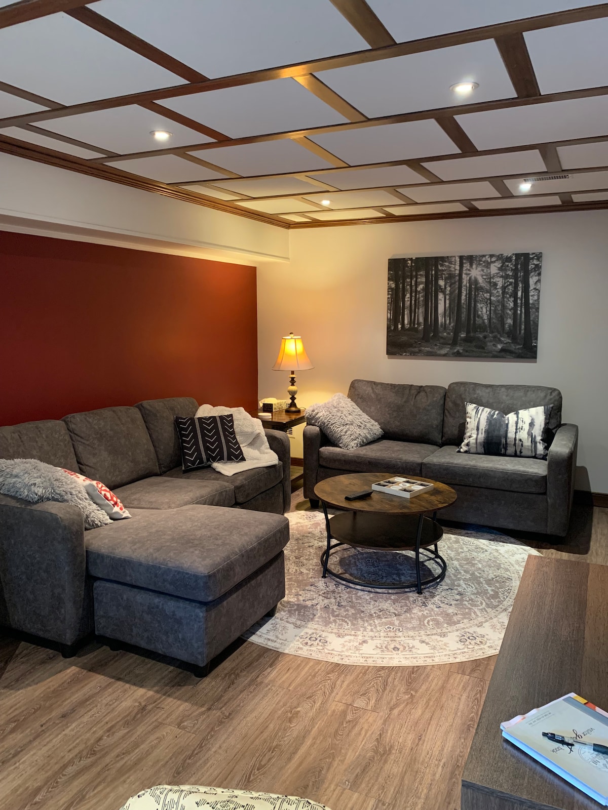 Welcome to our retreat in west London! This stylish Two-Level Basement Split is a guest suite ideal for friends and families. Our 1+Den has 2 comfy Queen Beds, 1.5 bathrooms, a large kitchenette with every appliance you need, and a foosball table for some competitive fun. Outside, there's a hot tub, firepit (BYO wood), BBQ, and outdoor eating area. We live upstairs and are available to assist with the indoor or outdoor amenities at any time!