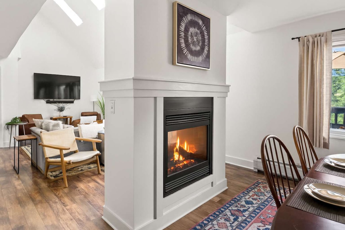 Fully renovated in 22/23 a high-end, modern, farmhouse style 2,000 sqft open floor plan condo/apt, with 2 large decks and outdoor space, with a firepit and newly installed AC and private access to Hot Tub! Perfect for entertaining and family gatherings. The living room, kitchen, and dining room are all open with lots of seating. In the summer and fall, open the doors to the expansive decks with an outdoor dining table, couch, and hammock! Enjoy family/friend time with a fire in the backyard.