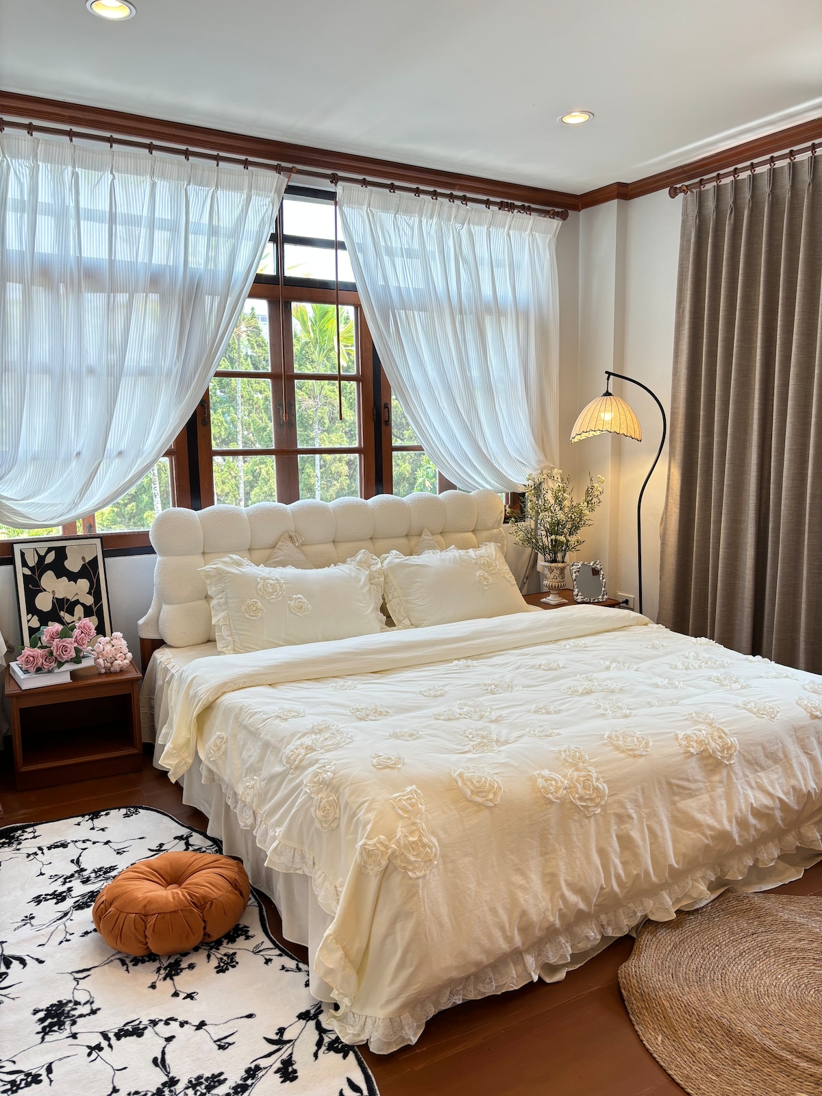 全新英式泳池别墅(4个套房卧室,5个卫生间) ⛳️3x6米按摩喷头瀑布景观盐水泳池,院子可以停下3辆车! 🛏️4卧大床独立卫生间套房(1.8米两个,1.5米两个),都带独立卫生间,主卧带圆形浴缸 卧室1️⃣ 位于一楼(适合老人,或者孩子),可以看到花园景观。有一个1.5米的大床,配备空调和空气净化器。有独立淋浴卫生间。 卧室2️⃣ 位于二楼左手边(最大的主卧),可以看到泳池景观。有一个1.8米的大床,配备空调,空气净化器,电视。有一张放松躺椅,和沙发区域。有一个圆形浴缸,独立淋浴区域。有梳妆台和衣帽间。 卧室3️⃣ 位于二楼右手边,可以看到泳池景观。有一个1.8米的大床,配备空调,空气净化器。有衣柜和梳妆台。有独立淋浴卫生间。 卧室4️⃣ 位于二楼右手边,可以看到花园景观。有一个1.5米的大床,配备空调和空气净化器。有衣柜和梳妆台,有独立淋浴卫生间。 🛋️西式明火厨房,带烤箱,微波炉,中控岛台,大餐桌,KTV,带火炉客厅。 🧹短租带每日清洁卫生阿姨,中文英文泰文线上管家 🚗可付费安排接送机,一日游包车。