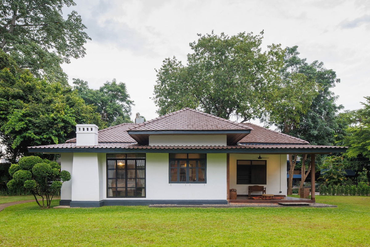 Experience "VILLA DE PRUEK" the perfect blend of colonial elegance and Lanna luxury. Our Villa offers an idyllic retreat with a private 3-acre lawn along the banks of the Ping River. Location Conveniently located just a 10-min drive from Chiang Mai Old Town and Chiang Mai Airport, our villa provides easy access to local attractions while maintaining a peaceful. And, just 3-min walk, you will find a local market, dining, and shopping options, ensuring you have everything you need close by.