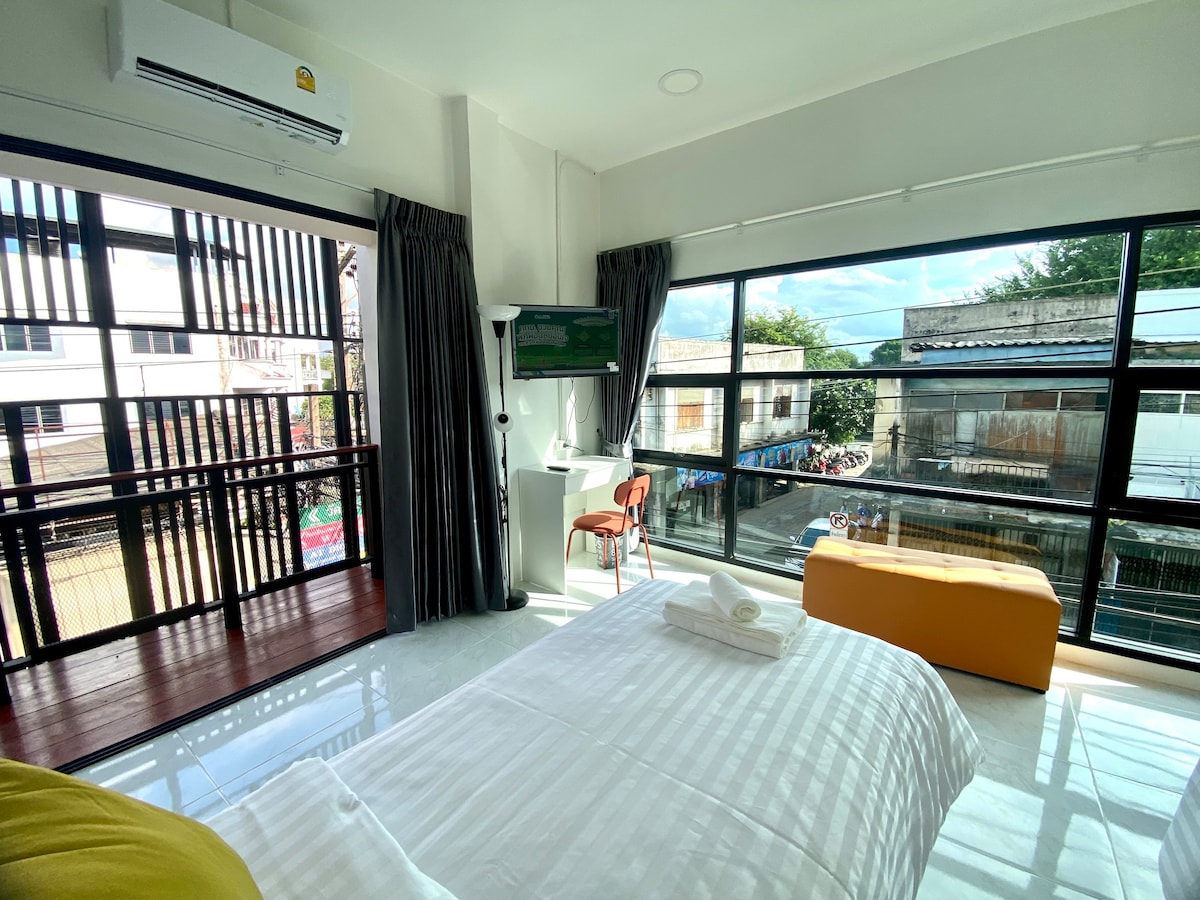 床和袋房间,带阳台@ Chang Puak门