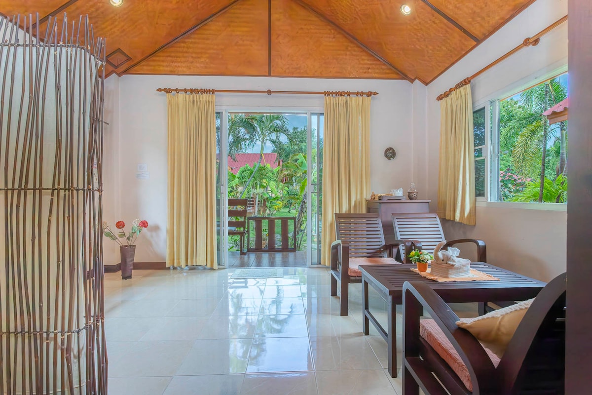 Welcome RungNara pool villa, horse, fish farm & Blue lake offers 10 rooms, four 35 sqm and six 28 sqm and 2 tubs and 8 showers. we have a public kitchen and BBQ grill (Reheating is free but not free for a big party meal) Free Breakfast and scooters for nearby. Delivered foods in 20 minutes. we are in a very quiet and isolated area but only 18km from Tha Phae. If you rent whole villa, it is the perfect for 20 to 30 people music and beer party. we provide tour information, a kids playground.
