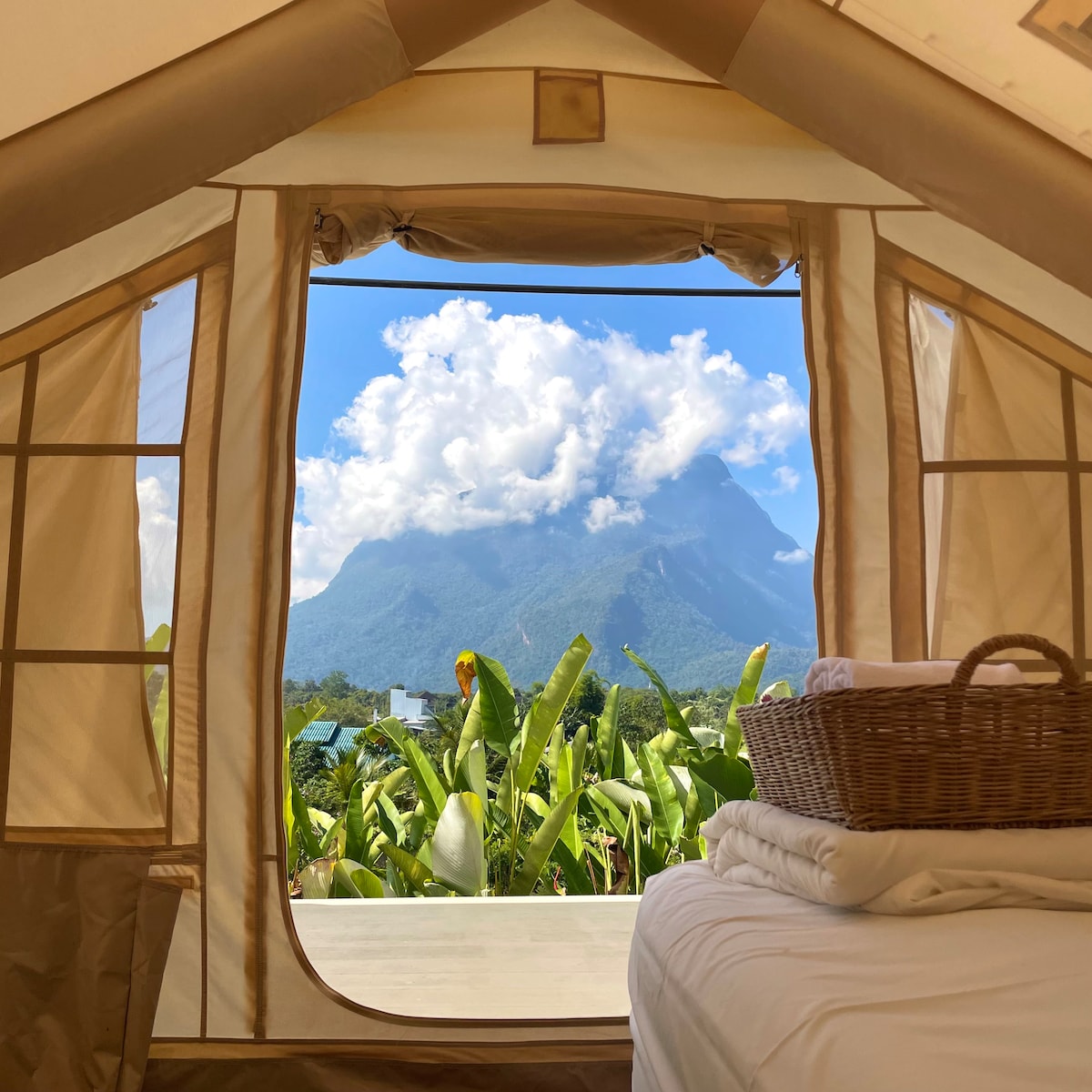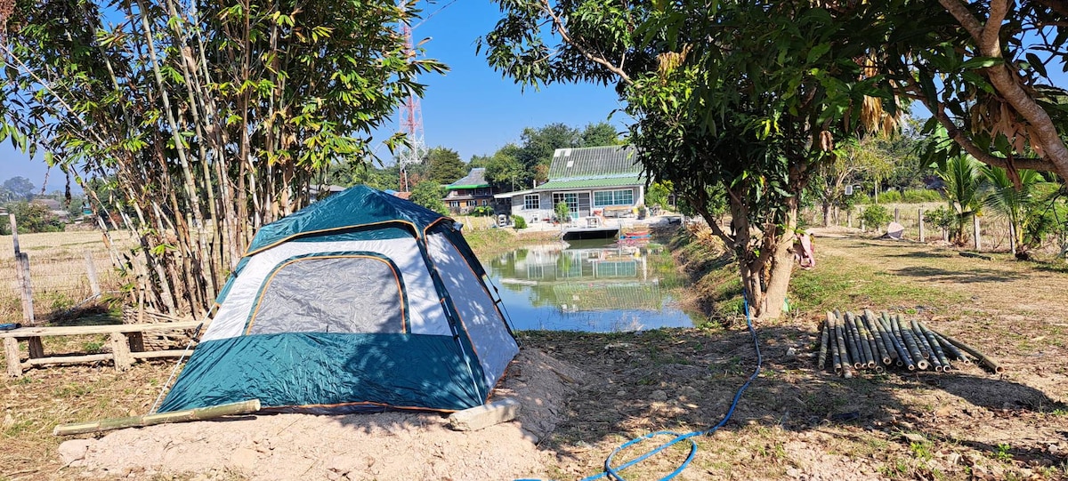 The place is located on the hill top. Stay comfortably in a tent with nature and great view of Doi Chiang Dao and rice field. Great base for your activities in the area. Clean mattress, bedsheet and blanket are provided. Shared toilet and bathroom.