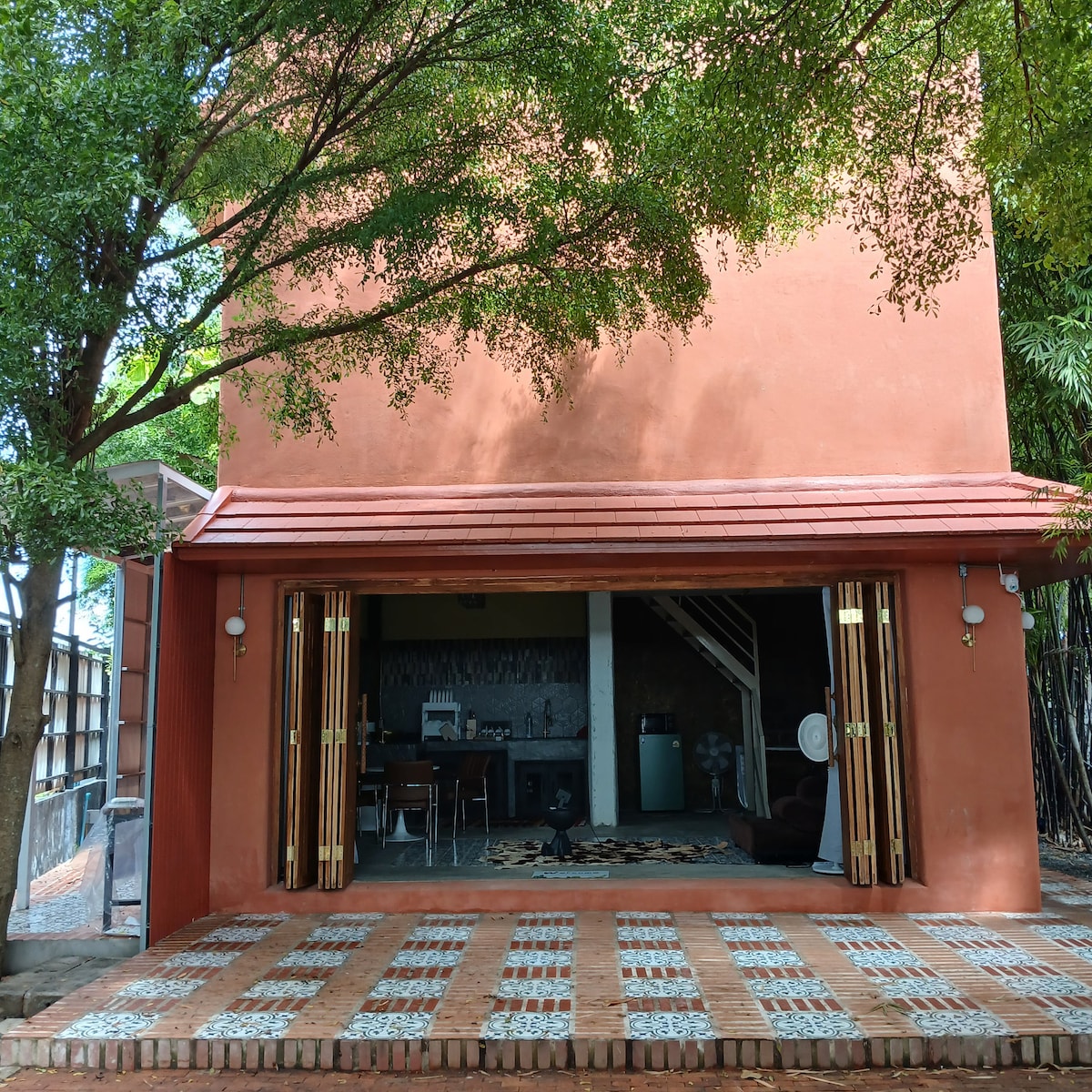 this is a old teak rice barn .all the wood in the house is recycled wood. two rooms i tried to give it a lanna thai style ,it is close to thai market western super market .lots of food and fruit and coffee shop 5 min. walk.full topical garden surrounds the house .public transport to the old city every 10 min. uber for late .scooters can be rented also.there is a few bugs downstairs. lots of birds sounds in the morning.there is 7 houses please check the other houses.