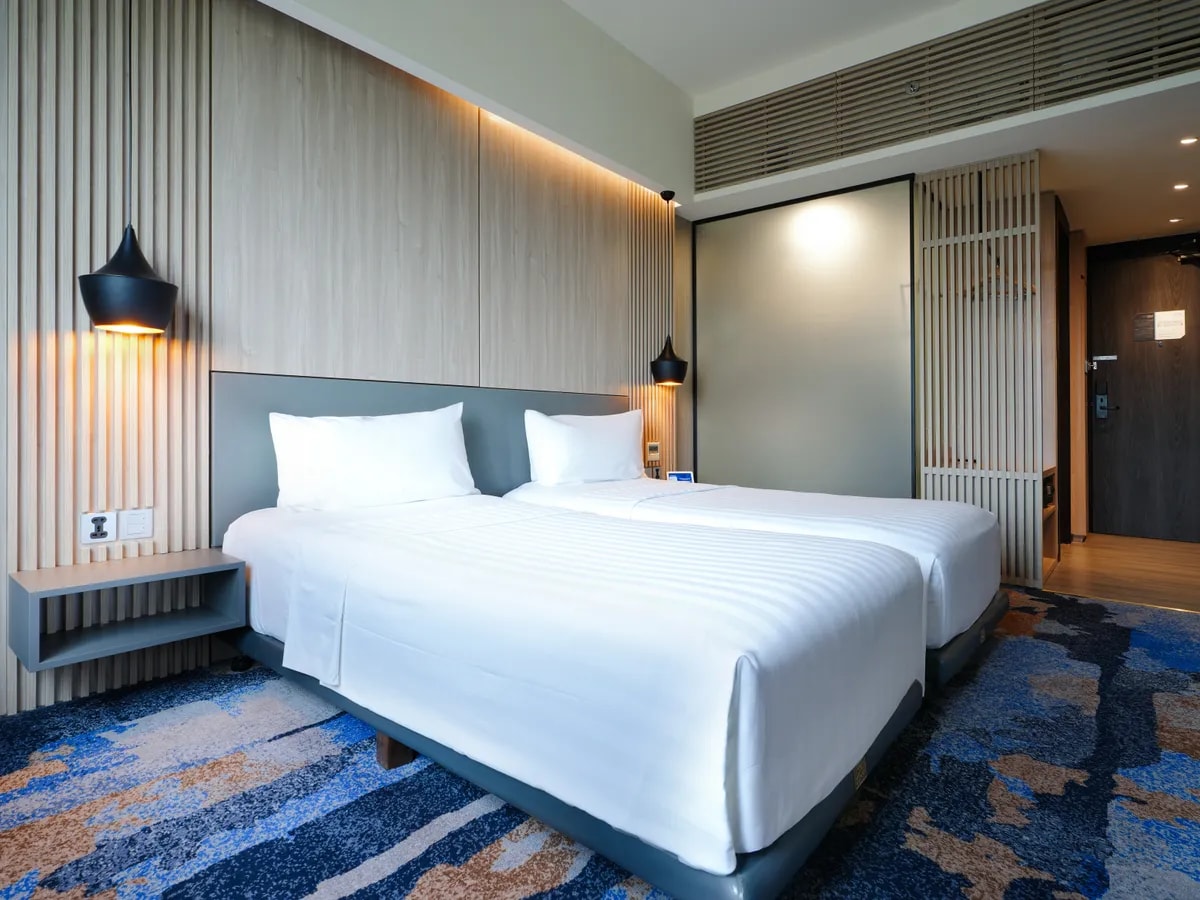 Indulge in serene luxury and embrace the art of slow living. Unwind in a beautifully styled room featuring twin beds dressed in plush linens, offering comfort beyond compare. Immerse yourself in modern elegance with Smart TV and Google Nest, ensuring effortless convenience throughout your stay. As you gaze upon breathtaking views that soothe the spirit, every detail surrounds you with calm sophistication — your tranquil escape awaits.