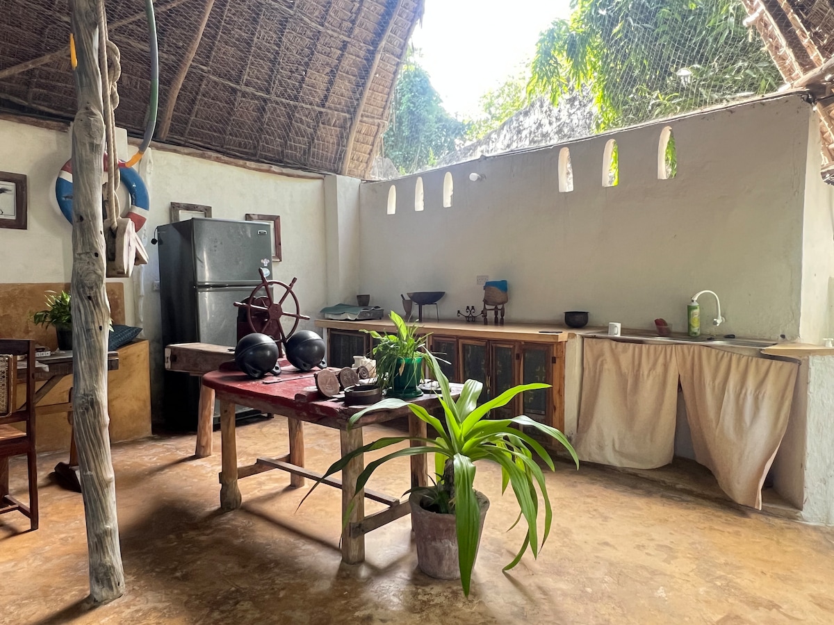 A charming white-washed seafront cottage at the edge of Shela village, nestled in a tropical garden on a small estate. Enjoy spectacular views of the channel and mangroves from the rooftop terrace. There is a 20m pool (shared with the main house) and the beach right at your doorstep. Your stay includes: - daily housekeeping - private chef - airport pickup - daily breakfast - purified water - internet - organic toiletries - 2 kayaks