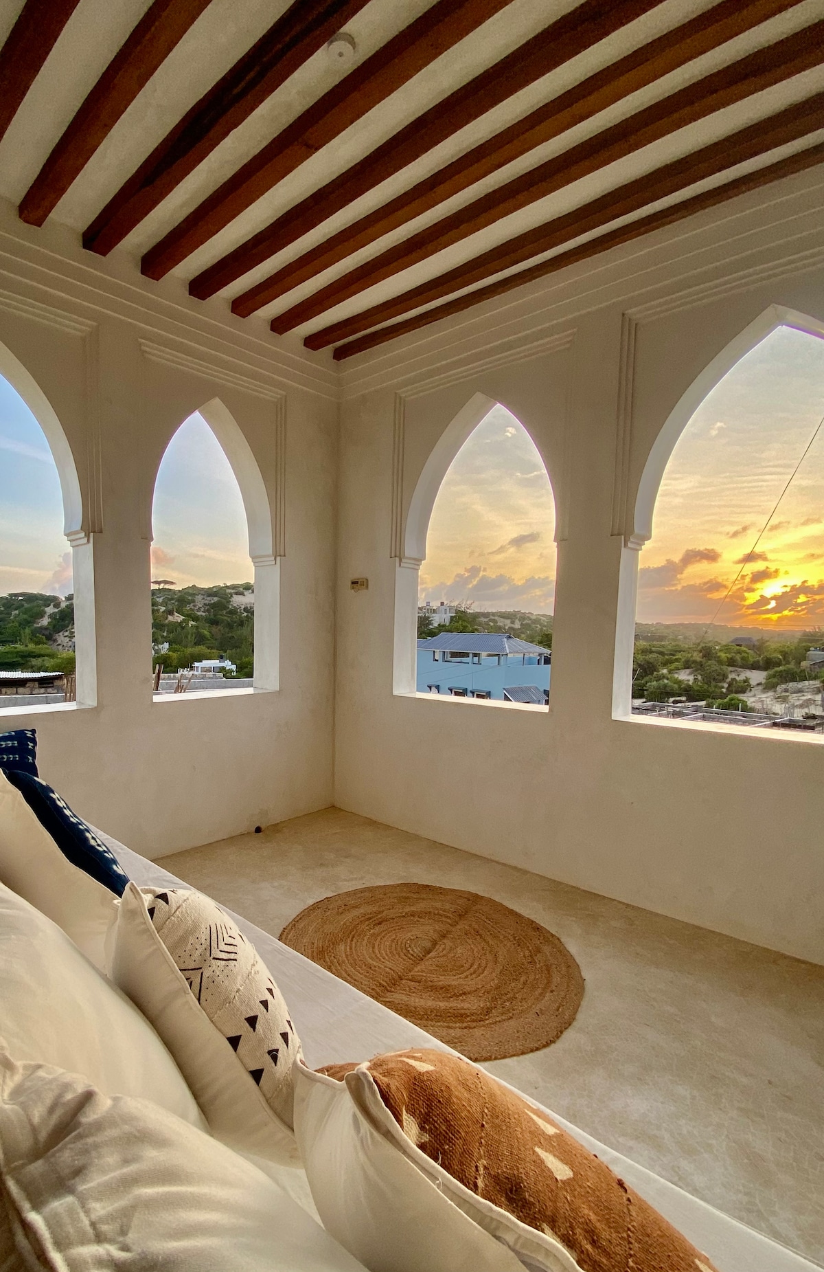 Escape to this stunning Swahili-style penthouse, a serene hideaway perched above Shella Village. Designed with natural makuti roofing, coral-stone walls, and handcrafted wooden details, this space offers an authentic coastal charm blended with modern comfort, creating the perfect setting for relaxation, reading, or unwinding after a day at the beach. Ideal for couples, seeking something truly unique, this penthouse combines Lamu’s rich architecture with a cosy, home-like atmosphere.