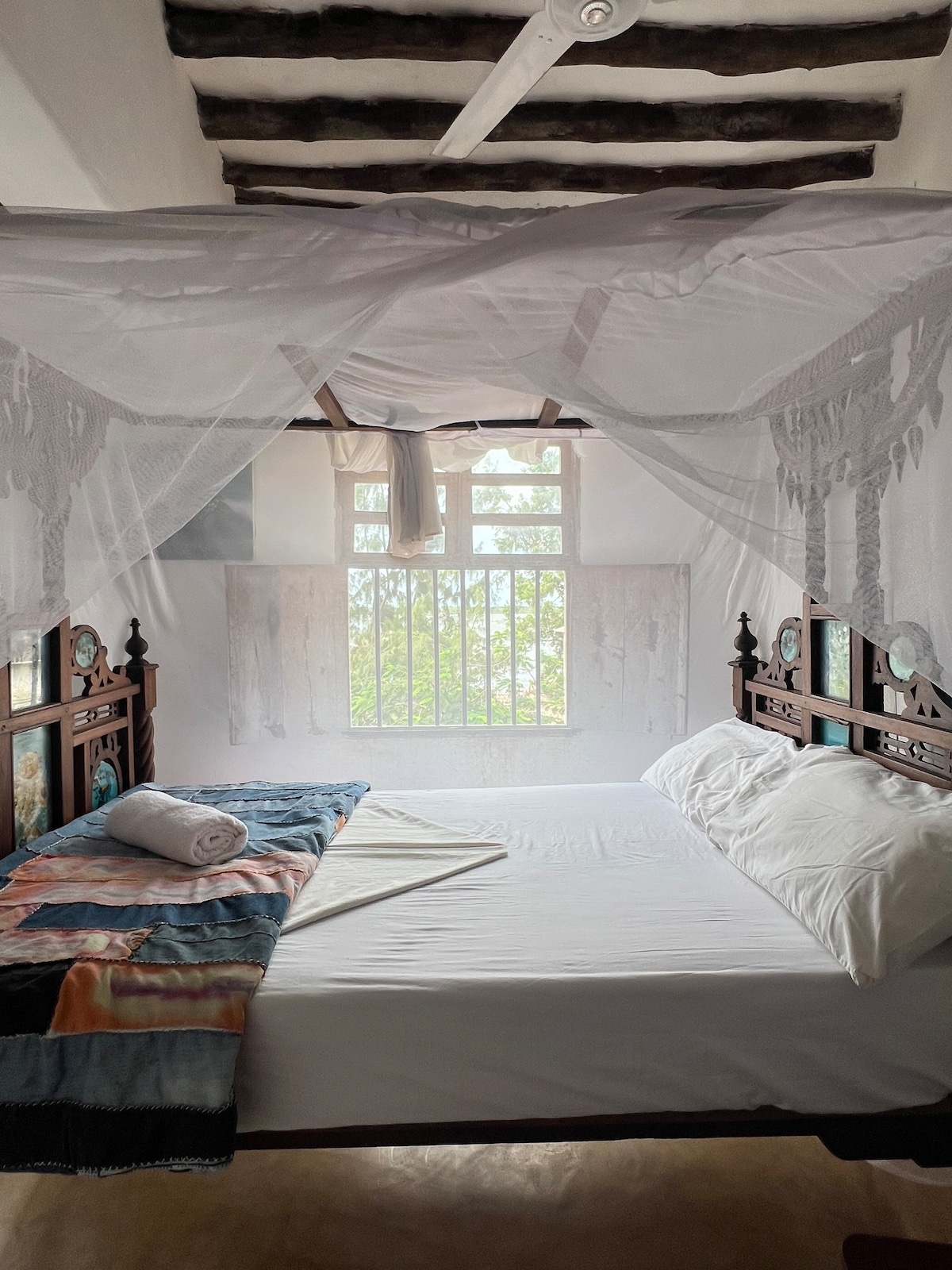 “Tanga Nyeusi” our solar power home on Manda Island sits directly across from Shela, offering sweeping views of the Indian Ocean and the rhythm of island life. Simple, soulful, and deeply peaceful, it’s a place for those who appreciate quiet magic, nature and authenticity. A small private boat with Juma, our captain is available for your use -just cover the fuel. You’ll also be warmly cared for by our wonderful house manager Karisa and our cook, who brings heart and hospitality to every stay