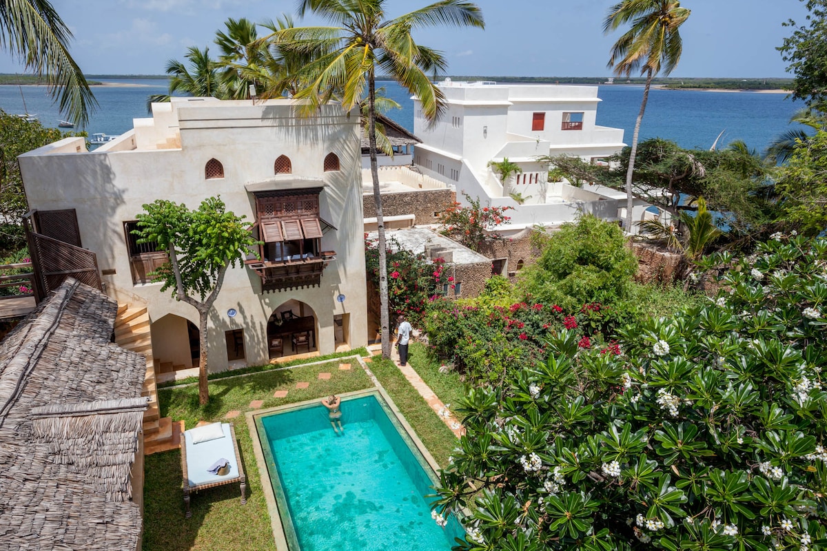 A charming white-washed seafront cottage at the edge of Shela village, nestled in a tropical garden on a small estate. Enjoy spectacular views of the channel and mangroves from the rooftop terrace. There is a 20m pool (shared with the main house) and the beach right at your doorstep. Your stay includes: - daily housekeeping - private chef - airport pickup - daily breakfast - purified water - internet - organic toiletries - 2 kayaks