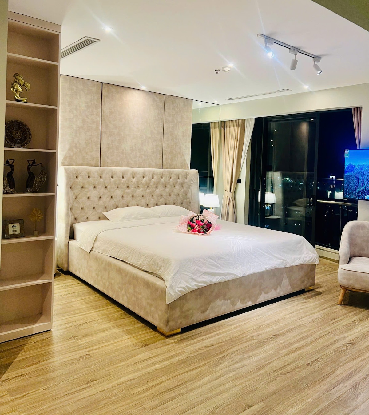 Luxury apartment à la carte Ha Long - the highest 41 floor building in Ha Long, the apartment on the 32nd floor has 2 bedrooms and a living room with glass ocean views, at the foot of the building is a white sand beach, 5-stars standard room facilities are fragrant and clean, suitable for families with young children or groups of friends who want to have a common space when traveling but still need a private, closed bedroom, especially when traveling. Watch the sea 24/24 even lying on your bed