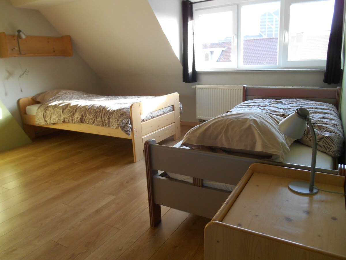 Magnifique duplex cosy, indépendant, calme, rénové dans maison de Maître où vivent les propriétaires, situé à200m de la gare des Guillemins, proche passerelle “La Belle Liégeoise”, Parc de la Boverie, à proximité du centre ville (Musée Curtius, Opéra, ..) Deux belles chambres mansardées et lumineuses, chambre d’appoint dans salon, grand séjour avec espace canapé-lit / Bureau, cuisine équipée, baignoire, 2 WC. Idéal pour séjour en famille, en couples, entre amis, voyage d'affaires. Parking aisé