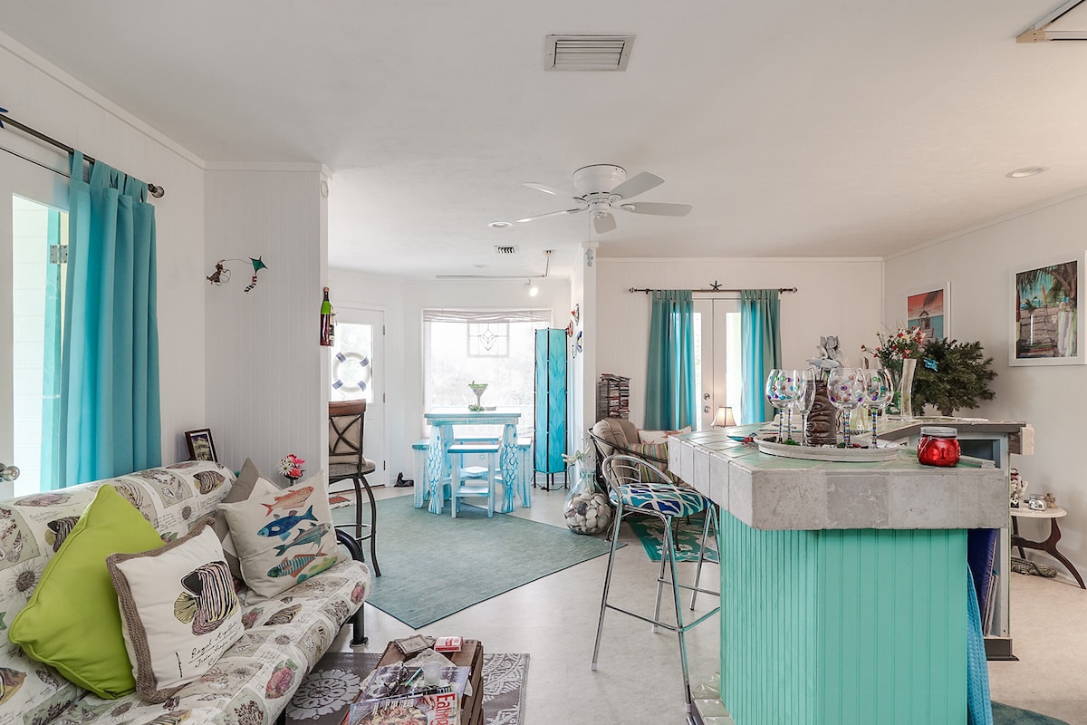 Toucan Play in Lanark Village, along Florida's Forgotten Coast, you can enjoy old Florida charm along the state's most pristine waterfront. Free parking, bring your boat--the ramp is down the hill--and fish Dog Island or visit Carrabelle by sea! A 6 minutes to St. James golf course. A 5-minute drive to Carrabelle or a 30-minute drive to the ranked beaches of St. George Island or the oystering town of Apalachicola. Our unit has a king bed, new futon, kitchen, front & back patios!