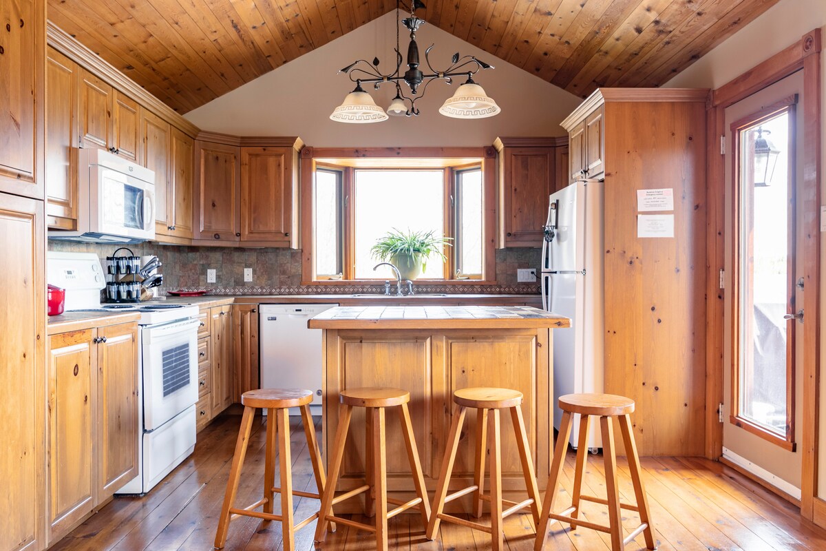 CITQ:305212 expired 2026-7-31 -THE BEST VIEW . -There is a long steep slope leading into the yard, requiring a 4 wheel drive car and winter tires in winter. -High speed bell wifi -Directly on the golf -SPA for 6 people -Spacious Cottage on two floors with 3 bedrooms and 4 bathrooms (Each bedroom have private bathroom -The masterbedroom even has a walk in shower Nearby activity: Access lake ,kayak, swimming pool, Beach volleyball, fire pit.( free for my guests) -Mont-Blanc, Mont-Tremblant Ski