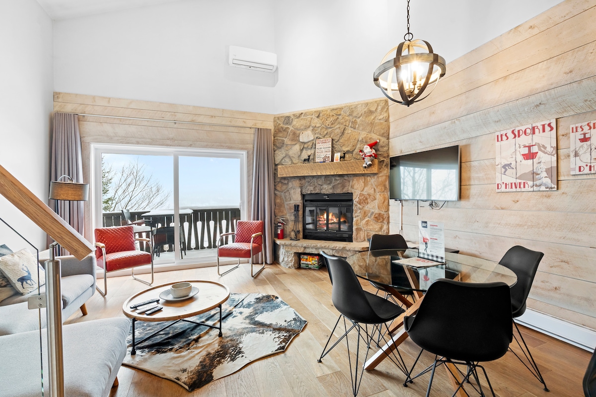 POOL & HOT TUB closed until june 2026 Le ChiK, a spacious loft-style condo, carefully decorated, bright and warm. Great views await you from the large private and intimate balcony and conveniently located next to the pool! - 5 min drive from Mont-Tremblant ski resort - Free shuttle stop nearby - Free parking/Wifi - Netflix/prime video/youtube and many others (your own subscription is required) - Shared laundromat in the basement ($)