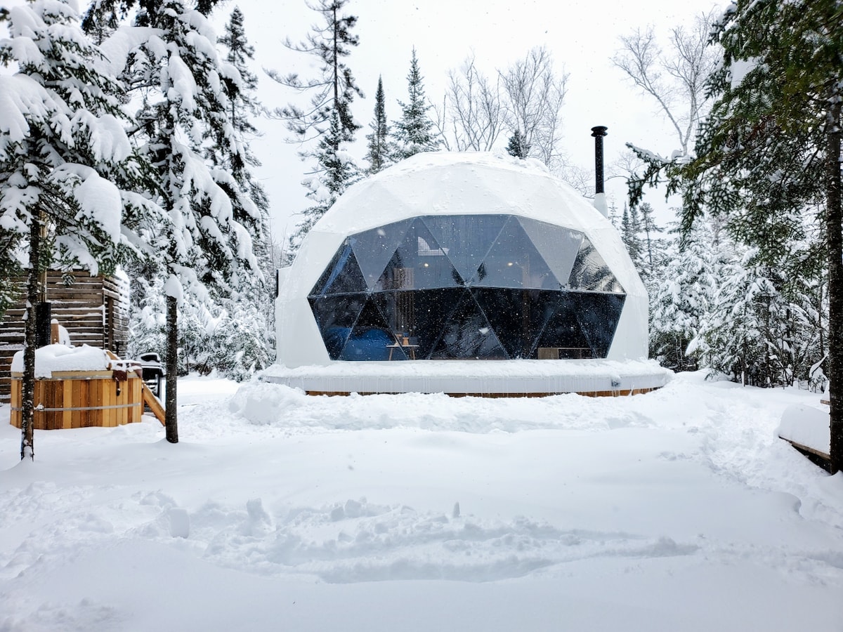 Visit our Airbnb profile to see the listings of our 6 private domes :) Welcome to Gîte l'Évasion! Experience sleeping under the stars in the comfort of a king bed, in the wonderful Lake Superior region. ✲ 25 minutes to Tremblant ✲ Private 4-season spa ✲ Indoor Gas Fireplace ✲ Fire pit ✲ Private terrace with BBQ ✲ Footpath ✲ Private shower ✲ Full kitchen ✲ AC ✲ Included: Bedding, towels, sanitary