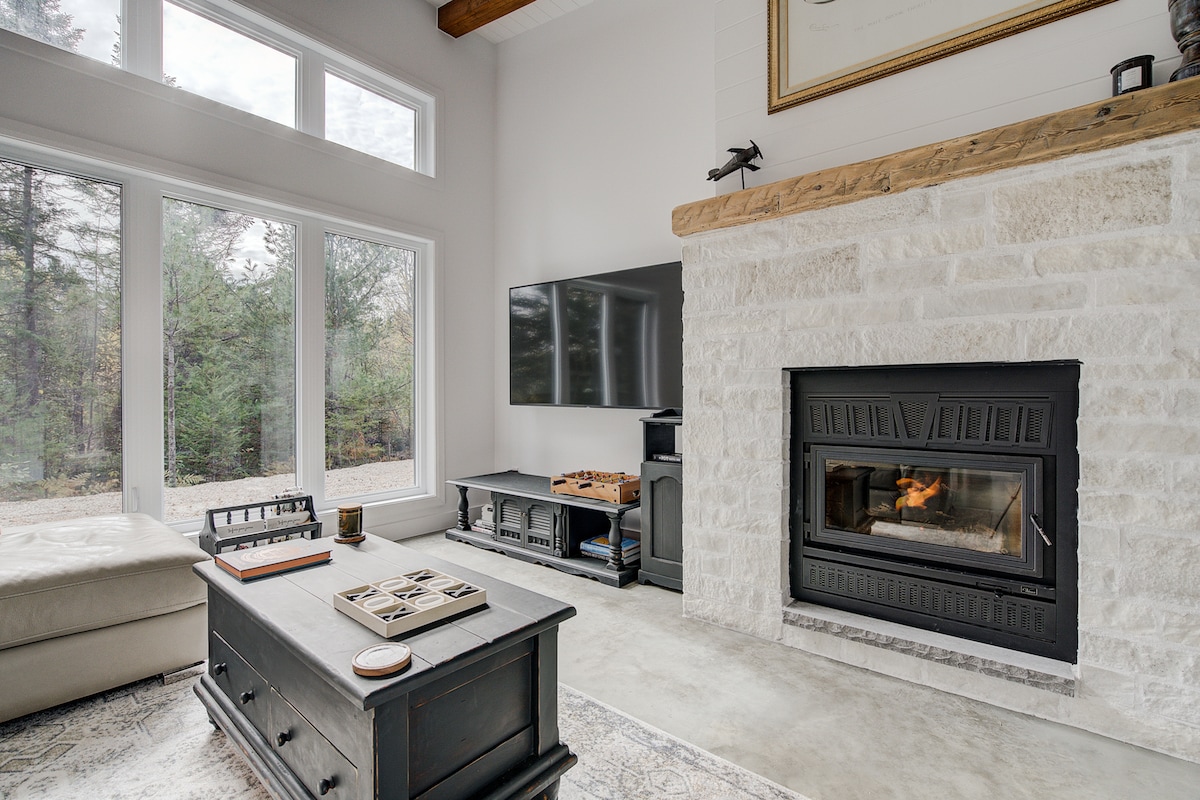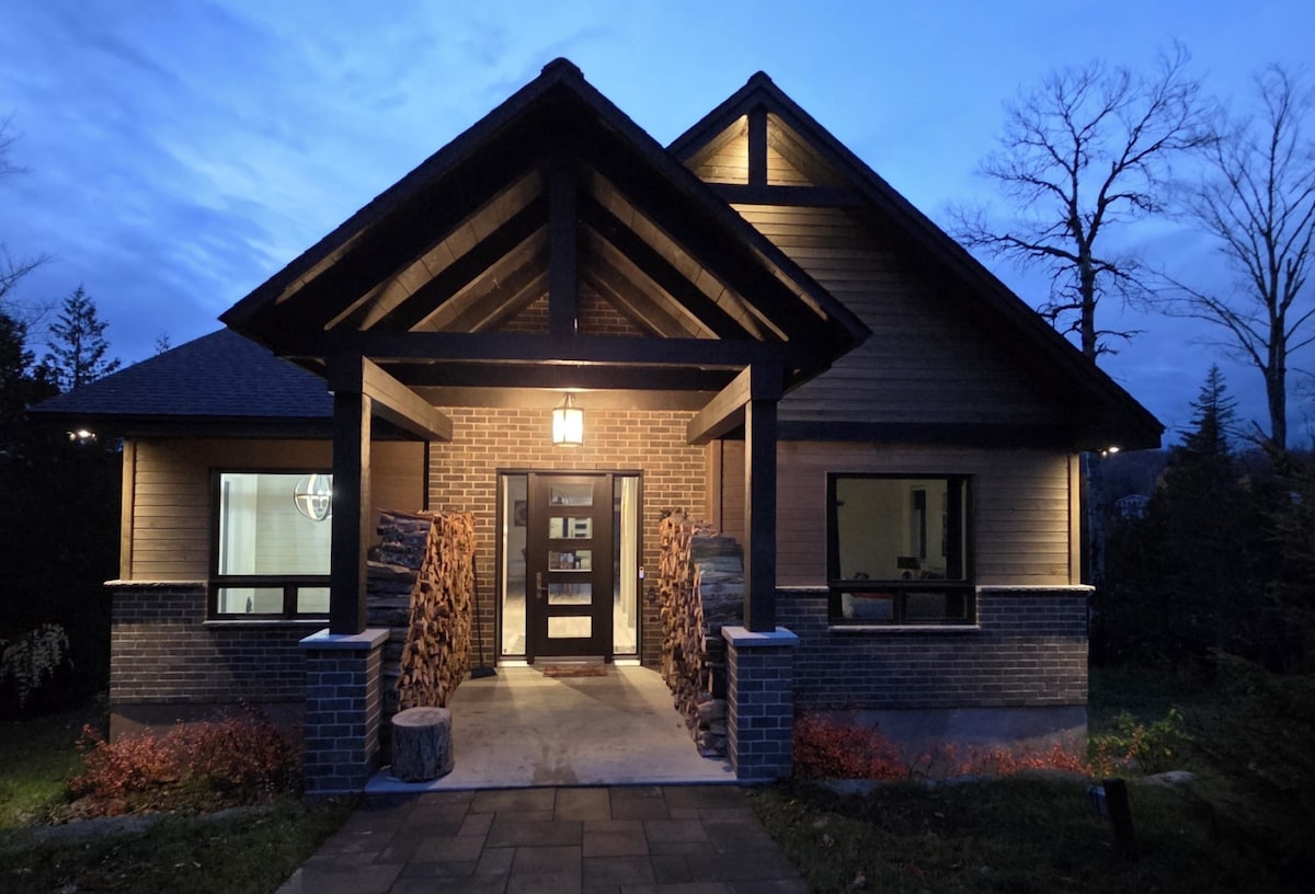 Chalet confortable et stylé en forêt alliant luxe et nature hivernale. Nouvelle construction raffinée, avec plancher chauffant, spa chauffé sous les flocons, foyers intérieur/extérieur et wifi haut débit. Intimité, confort et détente assurés avec 3 lits ultra confortables, literie haut de gamme et 2 salles de bains. Grâce à sa fenestration grandiose, profitez de la beauté de la forêt enneigée depuis le confort du salon. À proximité : sentiers de raquettes, ski de fond, motoneige et lacs gelés.
