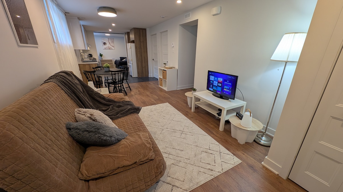 Très beau condo-appartement. Dans les magnifiques Laurentides, profitez de ce chalet chaleureux et confortable situé en montagne, directement au bord des pistes de ski, terrain de golf et un spa (2 piscines, bain tourbillon, bain vapeur, sauna). Ce chalet offre une atmosphère relaxante avec son foyer au salon et ses 2 chambres. *** Réservation pour 2 nuits et plus ***