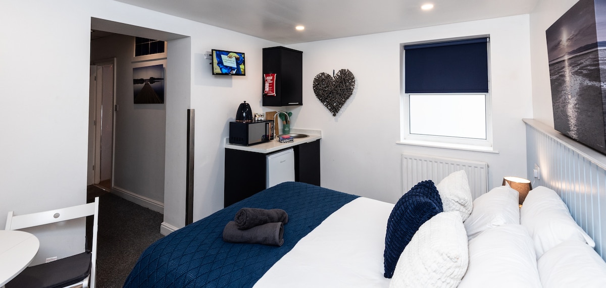 Our ground floor studio offers a cozy and inviting space located in a prime, central area with easy access to the vibrant shops, restaurants, and attractions of Lytham St Annes.. Relax on the comfortable superking bed and enjoy the convenience of the well-equipped kitchenette, featuring an en-suite bathroom, with a walk-in shower. Stay connected with free WiFi and take advantage of our complimentary parking. Experience comfort, convenience, and exceptional value at Sweet Suites Lytham.