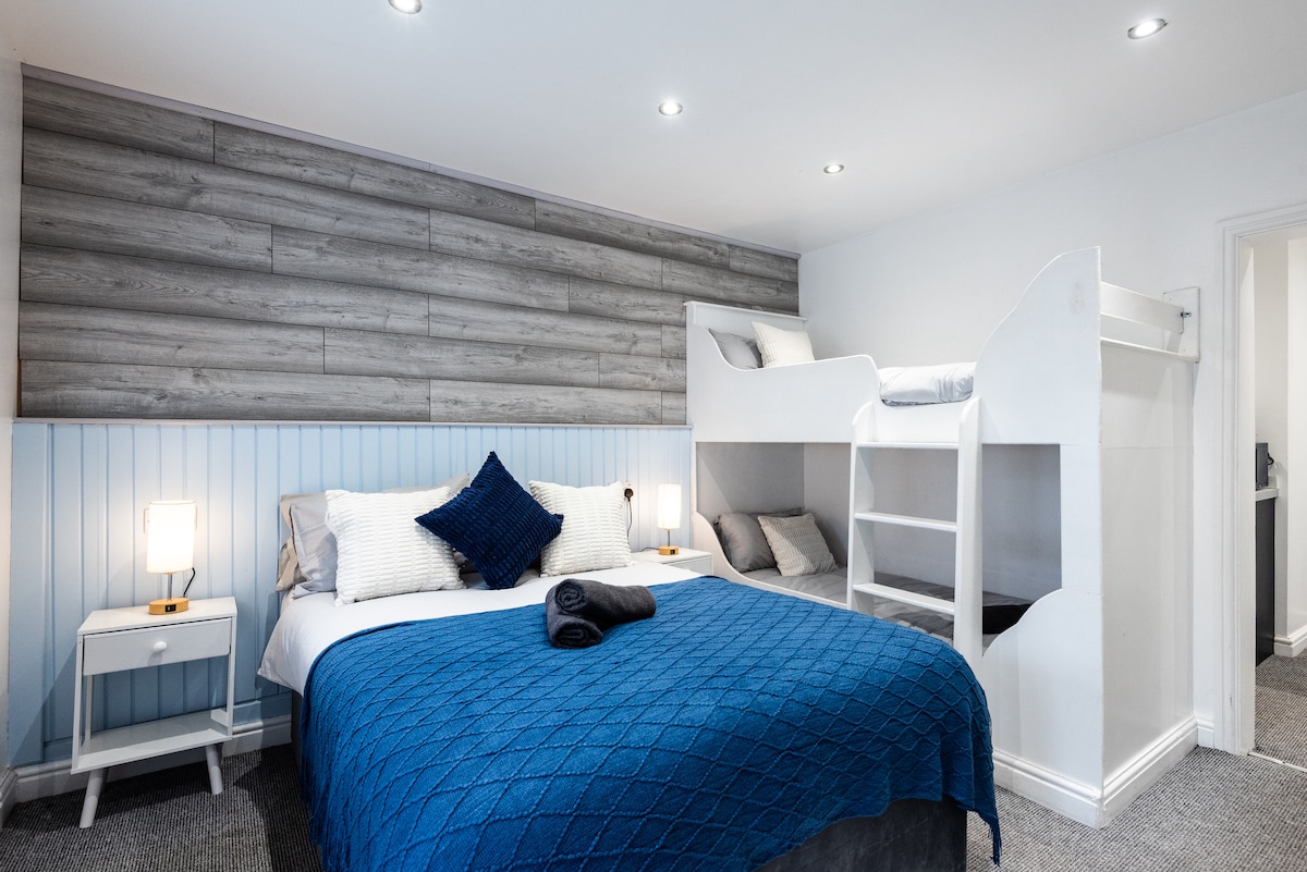 Our ground floor accessible one-bedroom apartment offers a cozy and spacious retreat. Relax on the superking bed in the bedroom, and accommodate extra guests with the single bed and sofa bed in the lounge area. The apartment features a well-equipped kitchenette, perfect for preparing meals. Enjoy the convenience of a walk-in shower in the modern bathroom. Located in a prime central area. Stay connected with free WiFi and take advantage of our complimentary parking.