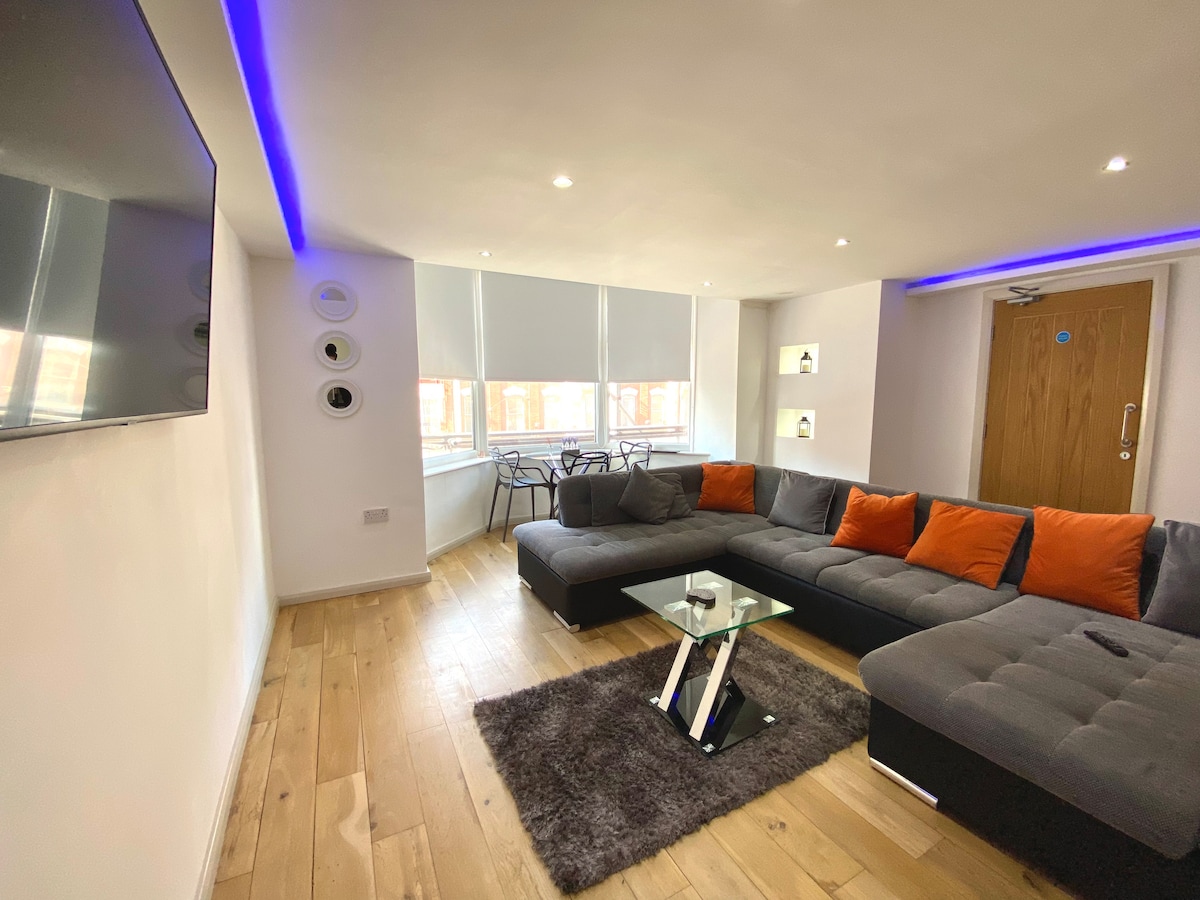The Carousel Suite- First floor, newly refurbished gorgeous large 1 bedroom apartment, central location, right opposite the North Pier with stunning sea view. Large open plan kitchen, dining room lounge, with stunning sea view. You will be right in the middle of Blackpool town centre, 5 mins walk to the tower, winter gardens, grand theatre and local restaurants/bars/clubs all nearby.