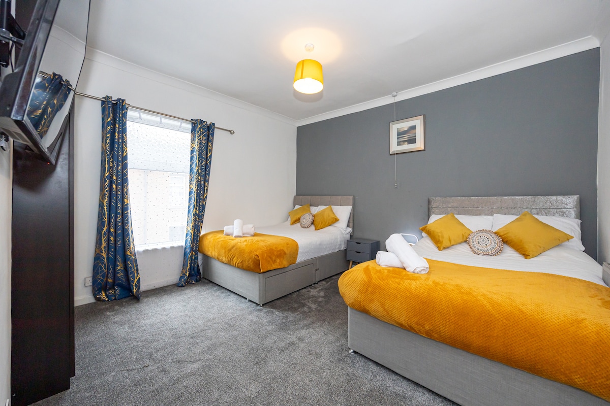This apartment sleeps 6 guests, 1 double bed and 1 twin room with 2 double beds, with a roof terrace! This modern spacious apartment has Smart TVs in the bedroom & living area, free 5G Wifi, microwave, ironing facilities, bedding and a towel for each guest. These Apartments are location on Queen Street, in a very busy location of Blackpool with lots of Bars & Restaurants. Enjoy a centrally-located place with everything at your door step. *Christmas Tree In Place NOV-JAN*