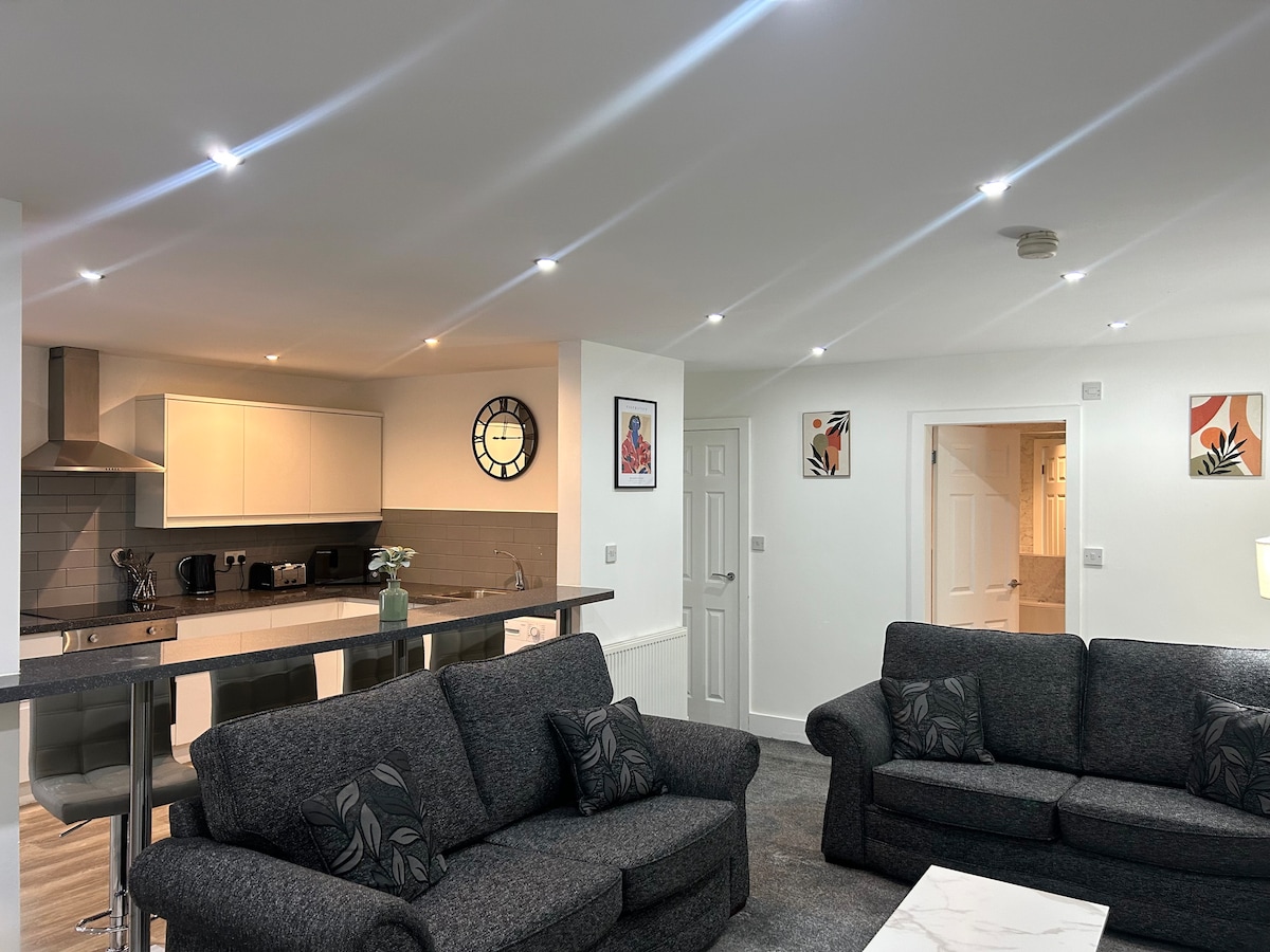 EXCLUSIVE SEA VIEW PENTHOUSE LOFT APARTMENT Custom designed penthouse apartment, Sea view, park view, balcony, log fire, 200” cinema. Blackpool’s premium loft-style executive apartment. Enjoy uninterrupted Sea & park views from the lounge / balcony. Designer kitchen & bathroom with walk in spa-shower. Full surround sound 200-inch cinema experience. Real log fire and wood floors throughout for a unique loft experience. Unlimited 5GWifi, keyless locks, central heating & EV charge point.