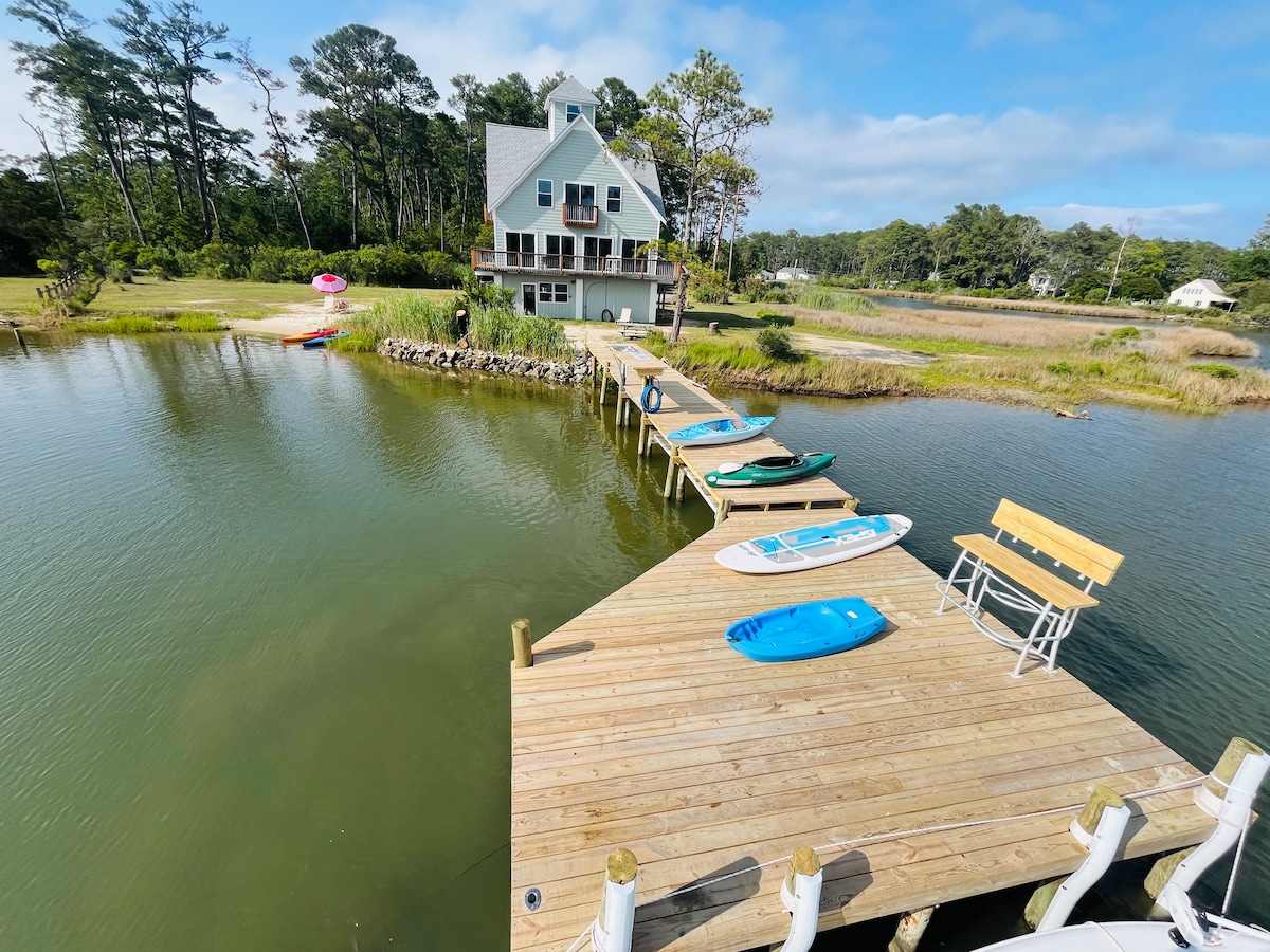 海滨房源,带私人码头和火坑~靠近Tides Inn