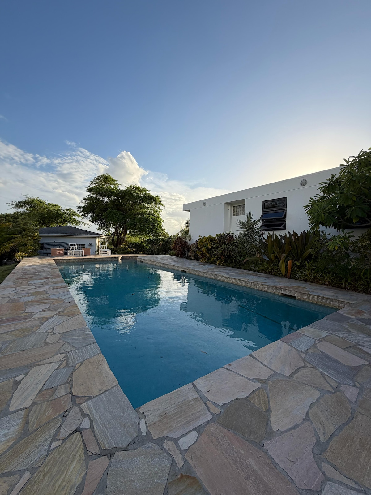 Condo Las Palmas at Reef View Pavilions is a Spanish/adobe style, 3 bed /3 bath luxury residence at a family-owned Grenada villa resort with access to two shared pools. Las Palmas is positioned directly in front of the dazzling lagoon style pool in the main courtyard BBQ & picnic area. All of the bedrooms have a stunning pool view. The Rooftop Terrace offers sea views along with sundeck and entertainment area. A small beach is close by.