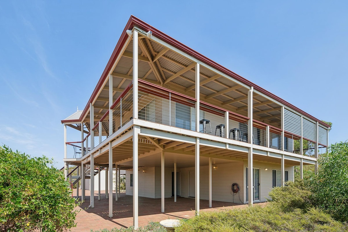Location, location, location, Perched on top of the Sand Dunes. Absolute Beach Front. Spacious Family Home. with Timber Floors and High Ceilings. Ocean Views from Almost Every Room. Open the Doors let the Sounds and Smells of the Indian Ocean in. Relax under the Covered Patio in front of a fully Grassed Garden. With the White Sandy Beach only a Hop, Skip and A Jump Away. Chill out on the Bean Bags or Reclining Outside Chairs, Sipping on a Cool Beverage. Pets Welcome on request, bring beds, ect