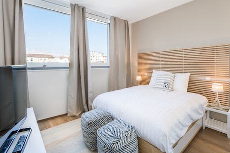Modern 1-bedroom apartment in the heart of Geneva, perfect for business or leisure. Enjoy a cozy bedroom with a comfortable double bed, bright living room with sofa convertible for 2 and TV, fully equipped kitchen, and elegant marble bathroom with walk-in shower. The central location puts cafés, shops, and transport within easy reach, as well as train station and historical city center within a 5 minutes walk. A stylish, convenient stay for couples, solo travelers, or business trips.