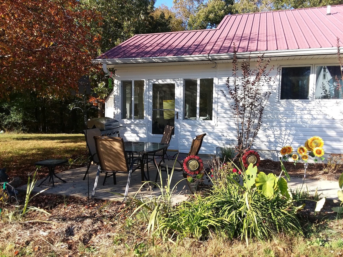 Comfortably furnished and private one room cottage with a full kitchen and bathroom. It has a queen sized bed that sleeps 2 and a twin bed that can sleep 1. The property is located on 20 acres of timber. Deer are regularly seen in the beautiful backyard. There is a grill on the patio that guests may use. It has central heat and air and ceiling fans. It is three miles from Kentucky Lake. There is no WiFi or cable, but we do supply dvds and VHS tapes.