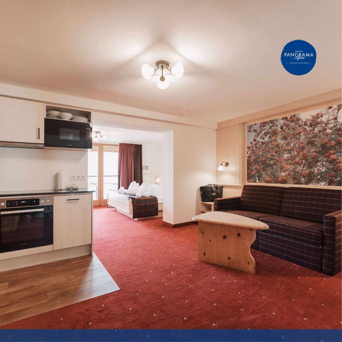 🌄 Bright 45 m² studio apartment for 2 adults & 2 children with double bed, living/dining area & sofa bed. Fully equipped Miele kitchen (induction hob, oven, microwave, dishwasher, Nespresso machine), modern bathroom with shower, toilet, hairdryer, towel dryer & natural toiletries. Wi-Fi, flat-screen TV, safe and some with balcony. Perfect for families or couples who love comfort, modern amenities and proximity to hiking, ski touring and alpine adventures. Relax and enjoy the mountains!