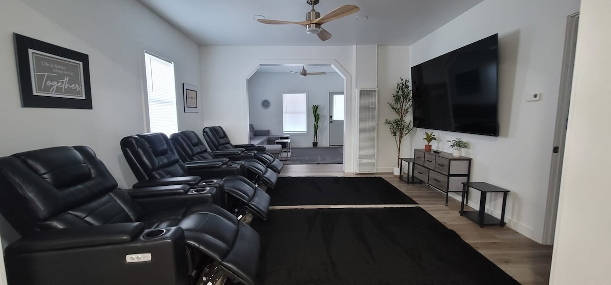 Relax with the whole family at this peaceful place to stay. 2 beds, 1 fold out couch. Front sun room, back laundry, private bathroom separating two private bedrooms. Large living room, large, separate dining room space, and spacious kitchen. Private fenced back yard and front yard parking directly infront of house. There are two, 3 step porches to access the 1 level home. We keep things simple, and know you will find peace and comfort at this lovely property. Welcome!
