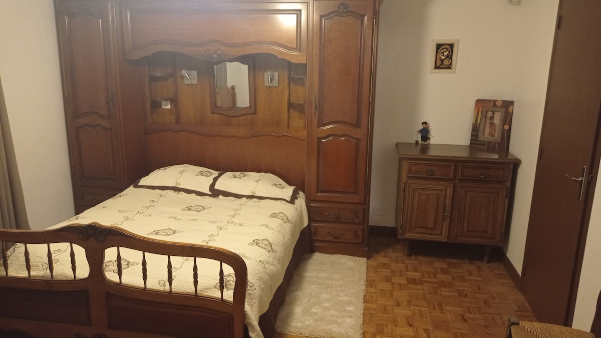 Jolie chambre au calme, pas de bruit d'avions, équipée d'un bureau, penderie, rangements au 1er ét.d'une maison individuelle.Vous bénéficiez d'une cuisine indépendante toute équipée au RDC. La salle d'eau et la cuisine peuvent être partagées avec un autre voyageur selon la période de location. Idéalement placée, à 5 mns à pied du TRAM arrêt PIN GALANT à Mérignac centre, prox.tous commerces et à 15 mns en voiture de l'aéroport.Possible de déjeuner sur la terrasse avec barbecue. Parking gratuit.