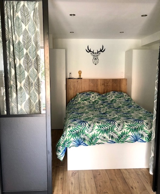 Espace refait à neuf, 35 m2 : - grande chambre / espace de vie - cuisine équipée séparée attenante - salle de douche + wc Maison résidentielle au calme, près du centre ville, supermarché. Votre espace est au rez - de - chaussée, nous vivons à l'étage. La chambre donne sur une grande terrasse à votre disposition pour les beaux jours. Café - thé - infusions à disposition. Connexion WiFi NON FUMEUR- merci d'aller sur la terrasse. Nous serons ravis de vous conseiller pendant votre séjour!