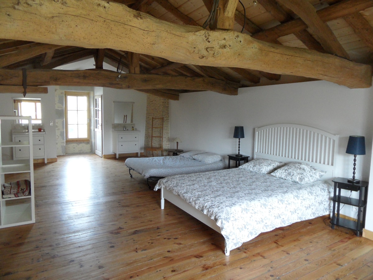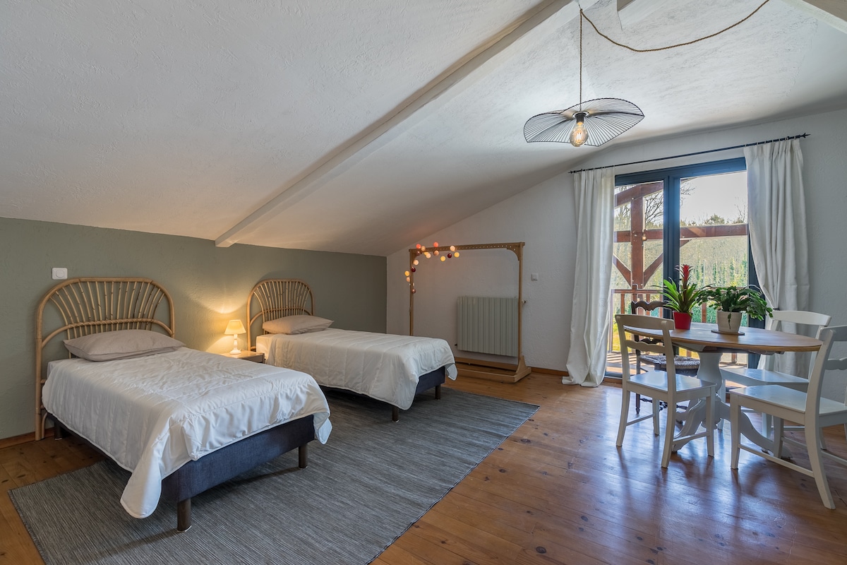 RELAX LOFT-Suite en chambre d'hôtes avec accès illimité au spa ,sans supplément de tarif et petit déjeuner inclus.( autonome et servi en véranda). Composé d'une suite cocooning indépendante et privée avec salle d'eau et wc , d'une véranda avec spa privatif semi encastré attenant à la chambre, d'un jardin privatif sans vis à vis , avec piscine, terrasses et cuisine extérieure ! La vue principale est dégagée et exposée ouest! La partie arrière avec jardin environ 300 M2 vous est réservée.