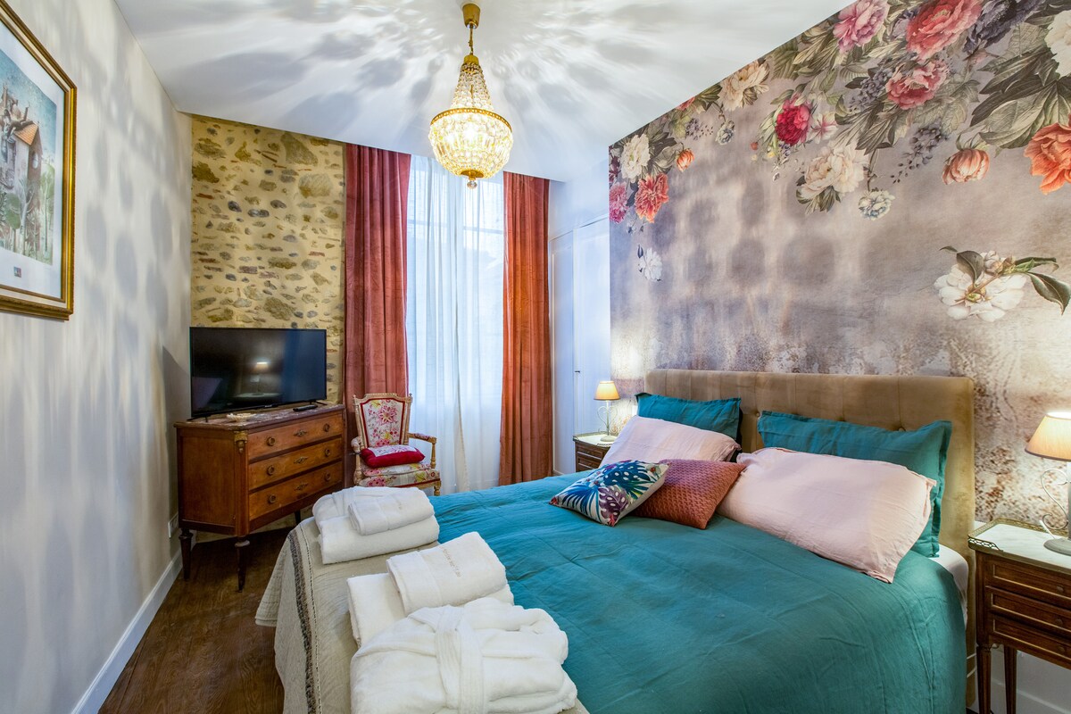 Loft "Love-Room" sans cuisine...Chambre de 50m2 sur tout un étage au dessus d'une grande maison rénovée avec piscine... élégance, raffinement, chic et glamour à 5 min de Dax, 20 min de l'océan. Un style boudoir réalisé par Architecte/décorateur. Conçue pour le couple avec immense baignoire îlot spéciale duo, tenues sexy et accessoires érotiques à disposition pour s'amuser. Parking fermé accès indépendant Petit déjeuné inclus Option Payante: Shooting Photo Bienvenu dans notre notre univers :)