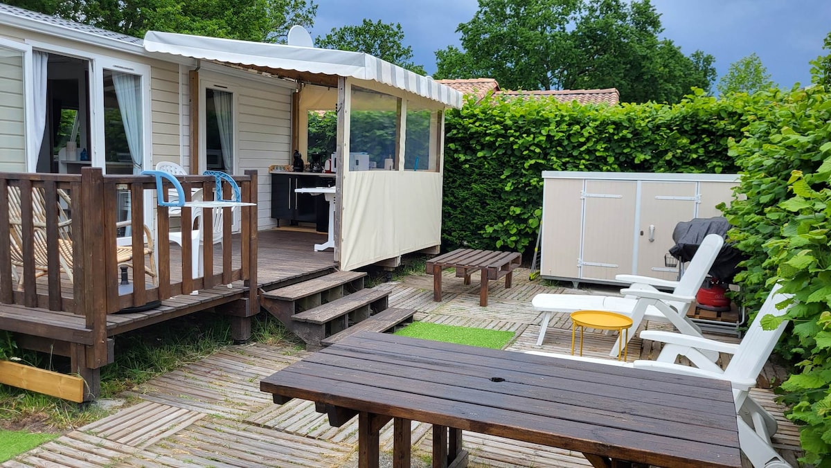 Mobil-home climatisé de 35 m² pour 6 personnes, idéalement situé dans le parc boisé du camping Mayotte 5*. Profitez d’un cadre naturel au bord du lac de Biscarrosse, à seulement 100 m de sa plage accessible à pied. L’océan est à 15 km, offrant un parfait équilibre entre détente au lac et activités nautiques en bord de mer. Le camping propose de nombreux services et animations pour un séjour inoubliable.