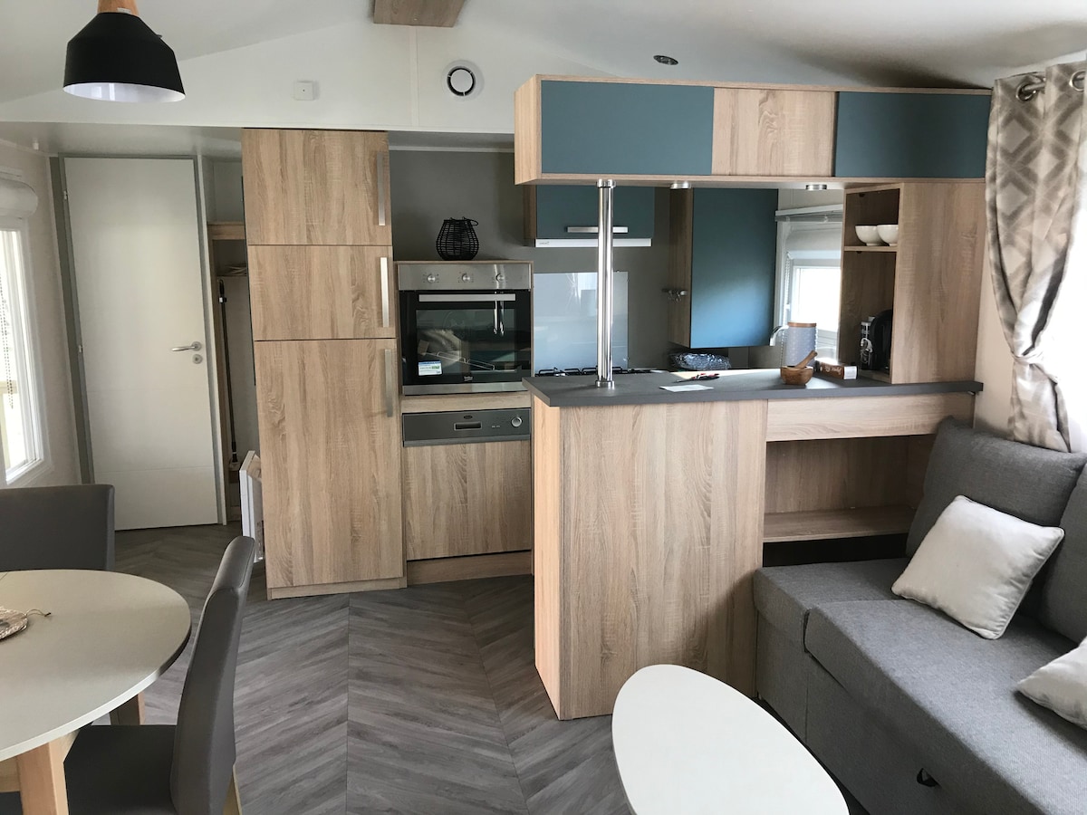 Prêt 6🚲 Mobil home de 40m2 avec terrasse couverte Climatisation réversible 3 chambres : 1 lit 140*190 ( chambre parentale avec accès salle de bains), 1 lit 120*190 ( pour deux enfants ), 1 lit 90*190 ( 1 personne) Salon avec canapé convertible , écran plat Cuisine équipée Salle de bains Chaise haute , lit parapluie et matelas, baignoire bébé Situé au camping *** Les Bruyères avec piscine , pataugeoire,supérette,bar/restaurant, aire de jeux et Mini Club, animations, tennis,.... ( en été )