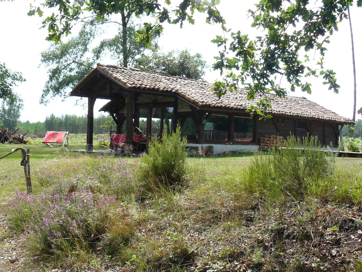 湖边和森林旁的典型Landes民宅