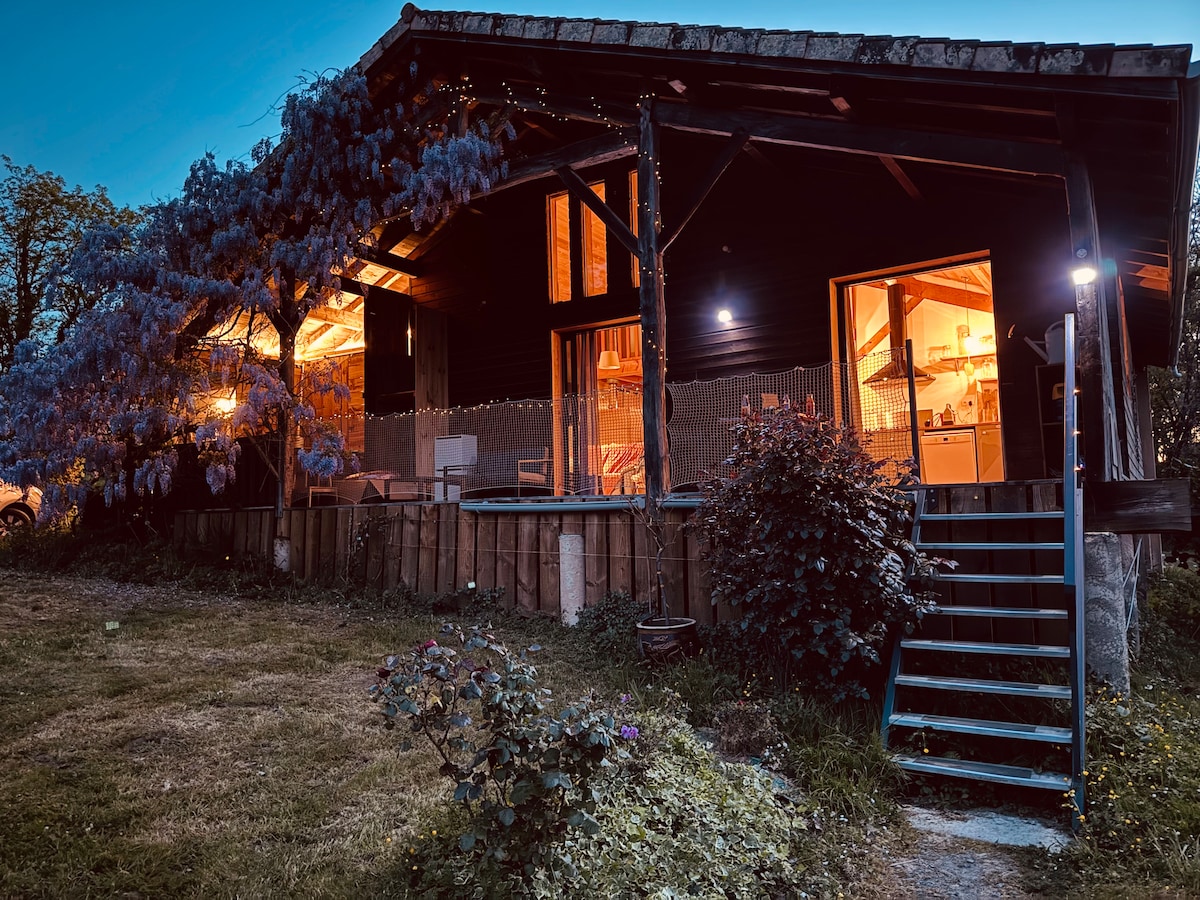 Dormir au plus près des animaux, ça vous tente ? Évadez-vous en Sud-Gironde. Notre gîte est au cœur d’une plaine de 3 hectares et accueille jusqu’à 4 personnes pour un séjour inoubliable entouré des animaux de la ferme. Un décor paisible, pour se reconnecter à l’essentiel. TERRASSE Bois & BAIGNOIRE EXTÉRIEURE JARDIN privé PRISE de charge VE 3,7kw (demandez forfait /jour) ESPACE INTÉRIEUR lumineux CLIMATISATION CUISINE équipée TV Android & Cast Wifi haut débit WC séparé 2 CHAMBRES