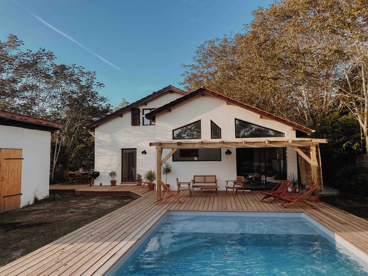 Salty Woods Lodge is a brand new design villa in Soustons plage where you can enjoy nature and architecture. The villa is located at walking distance from the beach, next to the lake and the golf course. You can walk or bike to the centre of Vieux Boucau, where you can find restaurants and shops. Weekly rental: from Saturday to Saturday (in high season). Max. 12 people (kids included). Under no circumstances it is allowed to add people.