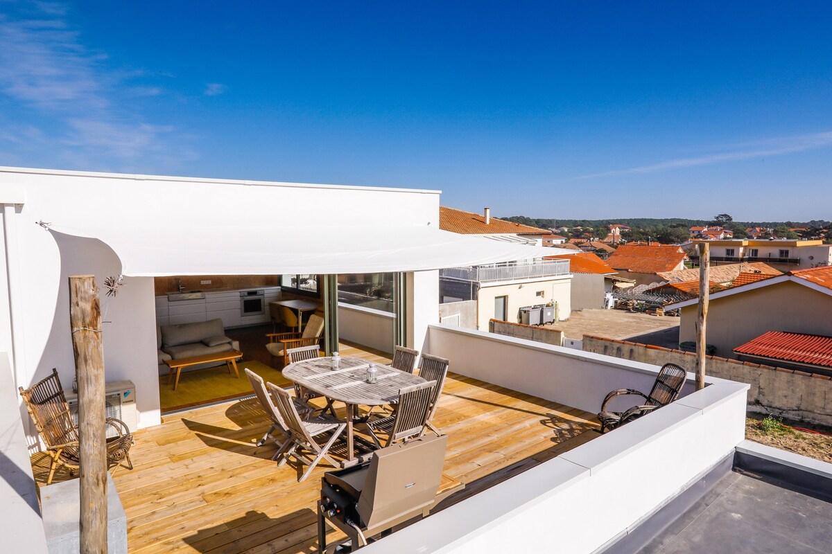 T3 neuf de 72 m2, situé à 50 m de la plage sud. Classement *** par Comité départemental du Tourisme Construction d'architecte, intérieur en panneau de pin des Landes. Vue imprenable sur Mimizan, la forêt landaise et ses levers de soleil. Accès en 30 secondes à la plage. 2 chambres (1 chambre double et 1 chambre lit triple), salle de bains avec grande douche à l'italienne, wc séparé en rez-de-chaussée. Pièce de vie, cuisine à l'étage 36 m2 avec terrasse de 25m2 ( plancha et voile d'ombrage).