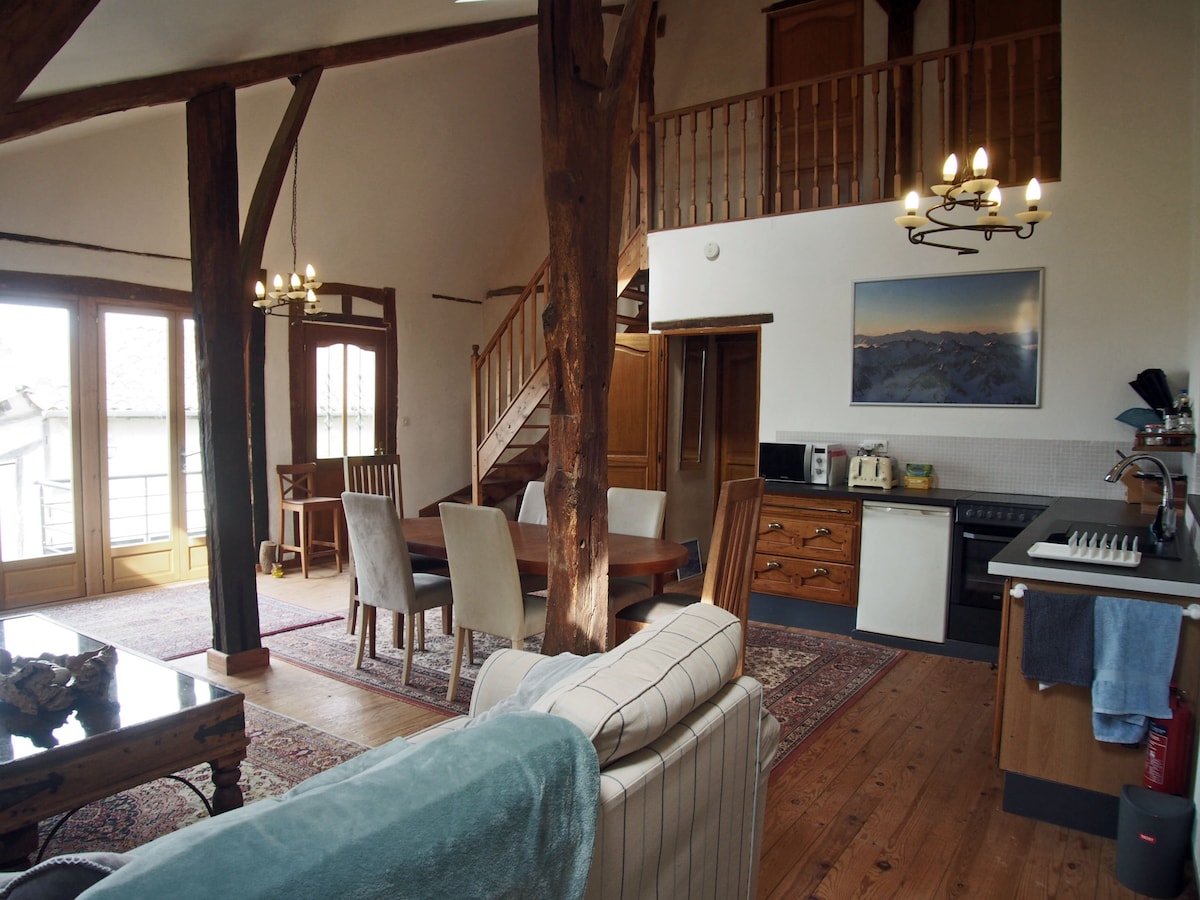 Lovely, spacious, light-filled home with beautiful views over the Gers countryside. Enjoy independent access, a private bathroom, kitchen area and two sofas overlooking a huge picture window. One sofa is a sofa -bed which would allow up to six people to share. Outside there is a gorgeous pool and large garden area plus a huge wooden table under the shade of two big trees. Please don't hesitate to get in touch for more information. We do have two large friendly dogs, various cats and two horses.