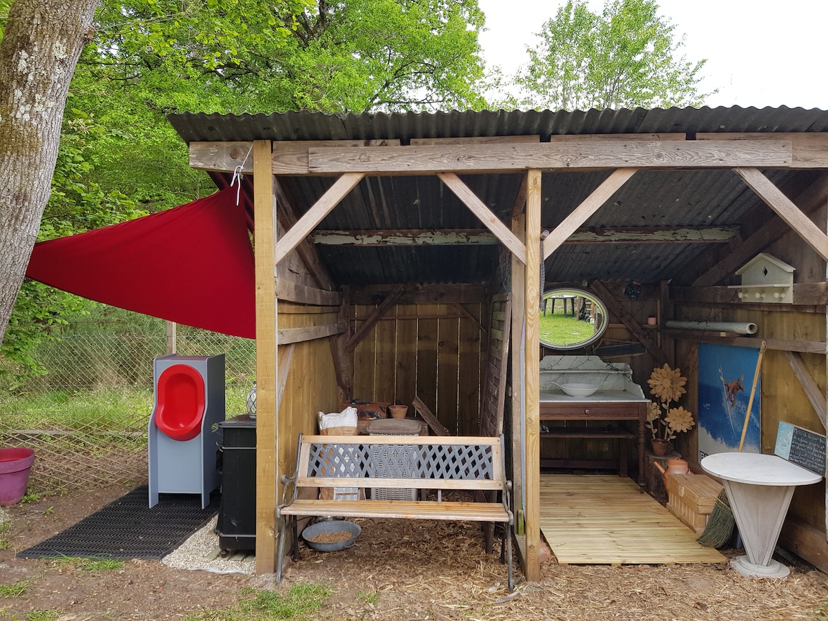 Nichée dans un parc arboré privé, notre tente lodge offre intimité et sérénité. Découvrez ce lieu atypique et enchanteur, pour une escapade en famille, entre amis ou en couple et profitez des nuits paisibles dans notre tente spacieuse et confortable. Pour la plus grande joie des enfants découvrez l'espace extérieur avec piscine privée et trampoline. À la nuit tombée, plongez dans une atmosphère enchantée et romantique à la lueur des lanternes et savourez les douces soirées sous le ciel étoilé.