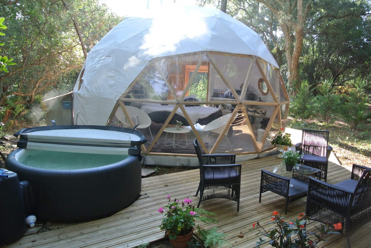 Implantée sur un domaine de 10 hectares, la Cabane Palombière vous offre une vue panoramique à 360°. Elle peut accueillir jusqu'à 2 adultes et 2 enfants de moins de 12 ans : en couple ou en famille, vous pourrez profiter d'un confort optimal dans cette cabane à la décoration raffinée. Isolée et totalement équipée, elle dispose également d'un jacuzzi privatif sur la terrasse ! Attention le spa est une option ( pas inclus dans la prestation ) . Un supplément est demandé par enfant et par jour .