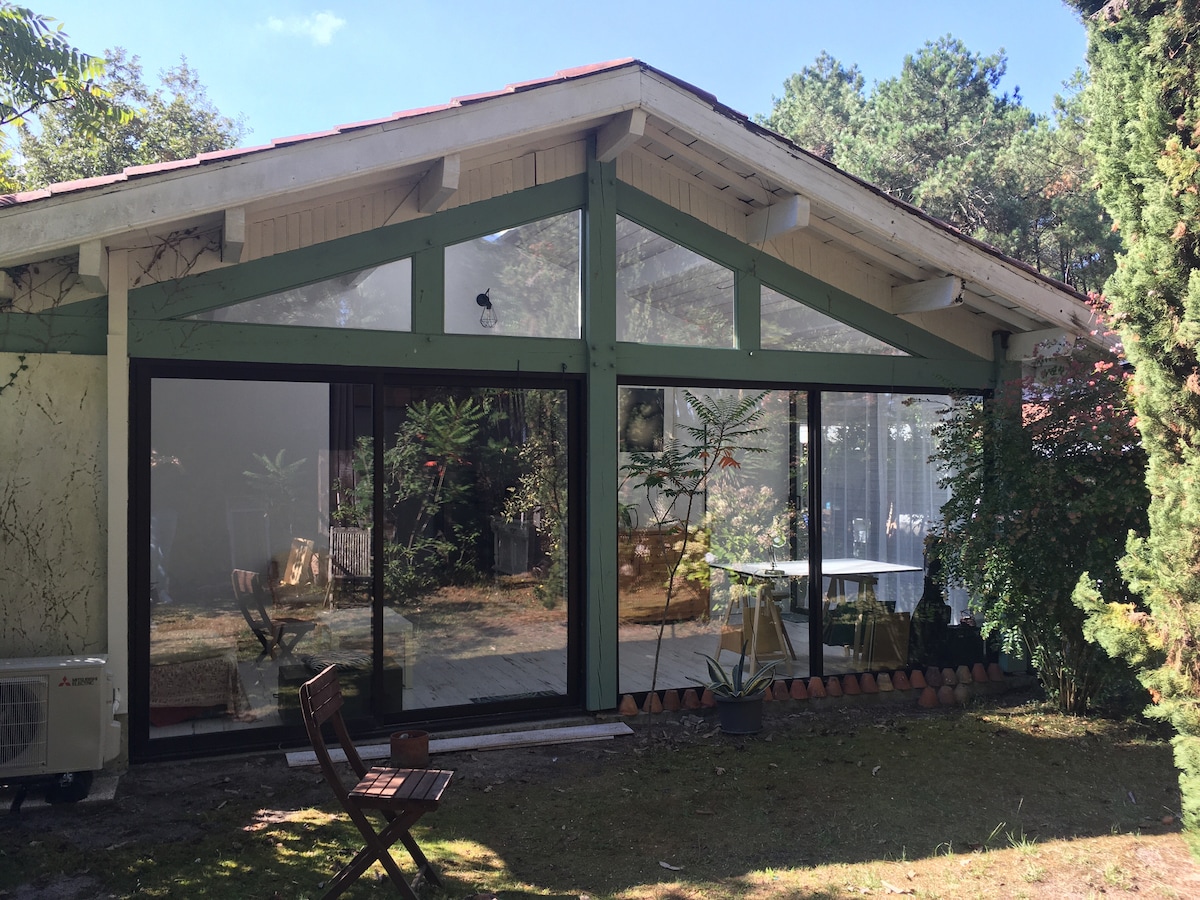 2 Bedroom House, sleeps 6, large garden, surrounded by Pine Forest. This is a lovely fully equipped, South facing house situated in Labenne Ocean, 500m from the Ocean. The open plan kitchen living room has South facing glass sliding doors, making the room very light and airy. The house was built with nothing but beautiful pine forest behind it. You can walk to the, surf spots, beach, local shops, bars, restaurants and takeaways.