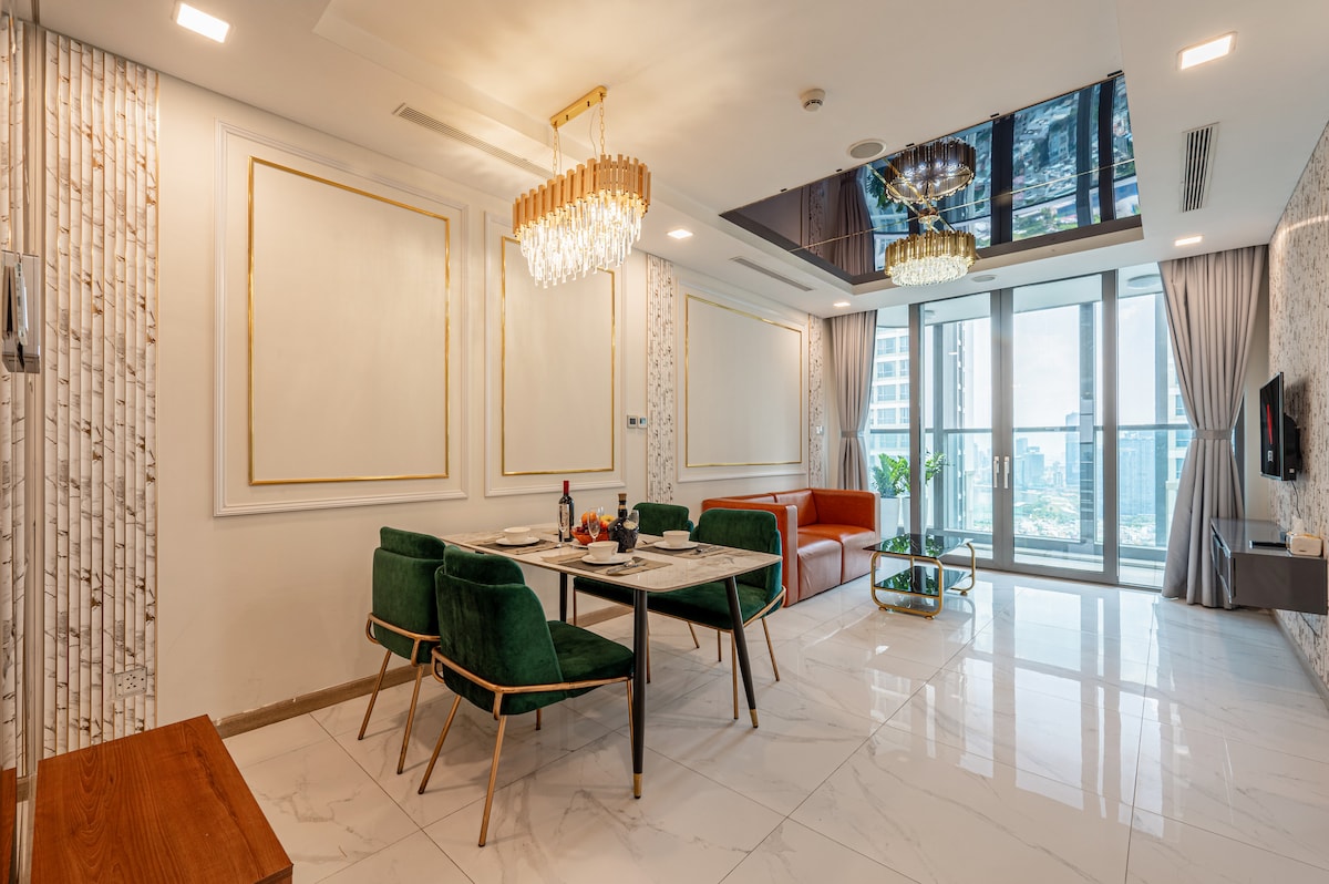 The apartment with 1 bedrooms in the Landmark, 3 kinds of design, spacious elegance bright, the bedrooms with supper comfy bed and pillows, HD TV are provided with high speed internet, fully equipped kitchen, towels and basic amenities. Amazing view to the river & city. few steps to the Landmark 81, There are many restaurants with multi cuisines, food courts, shopping mall, coffee shops, and many attractive activity around... an ideal place for travelers or business trips with your family.